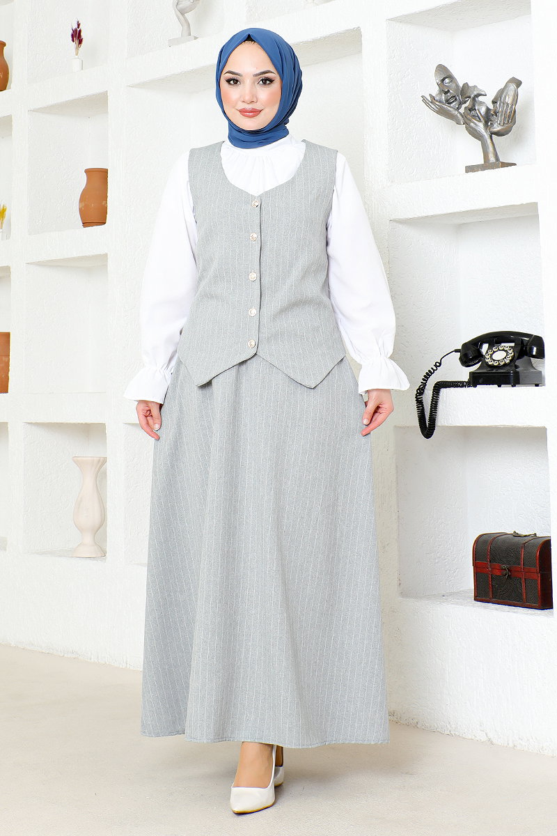 Çizgili Etekli Takım Gri