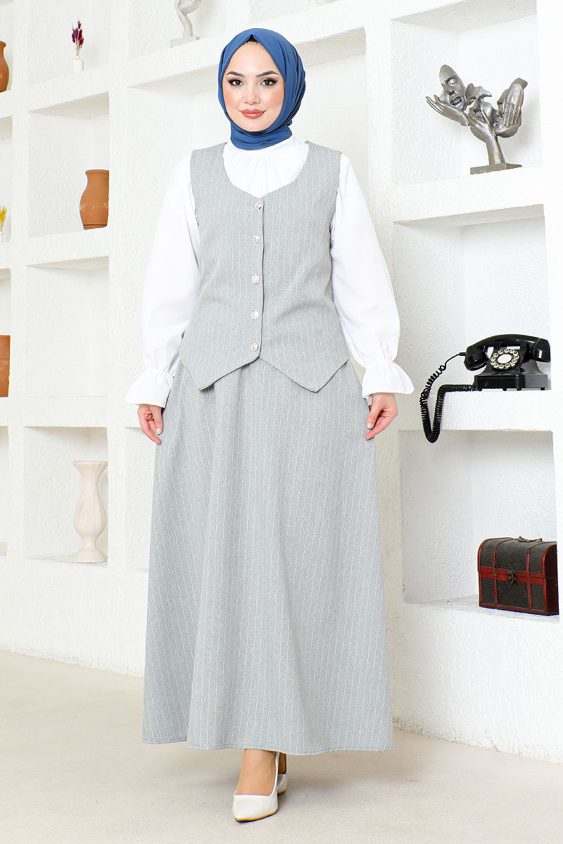 Striped Skirted Suit Gray