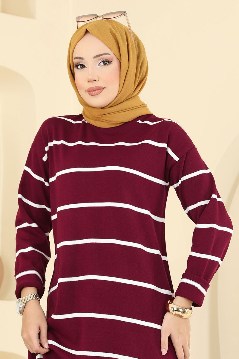 Çizgili Triko Elbise, tesettür modeller arasında yer alıyor. Özellikle sonbahar ve kış aylarında rahatlıkla kullanabileceğiniz bu ürün, 30 derecede hassas yıkamaya uygundur. Triko kumaştan üretilmiş olan bu elbise bisiklet yaka tasarımına sahiptir ve astarsızdır. Standart bedenlerde (36-38-40-42) kullanım için ideal bir seçimdir.