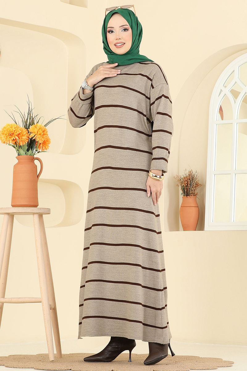 Çizgili Triko Elbise 2747AYD574 Vizyon