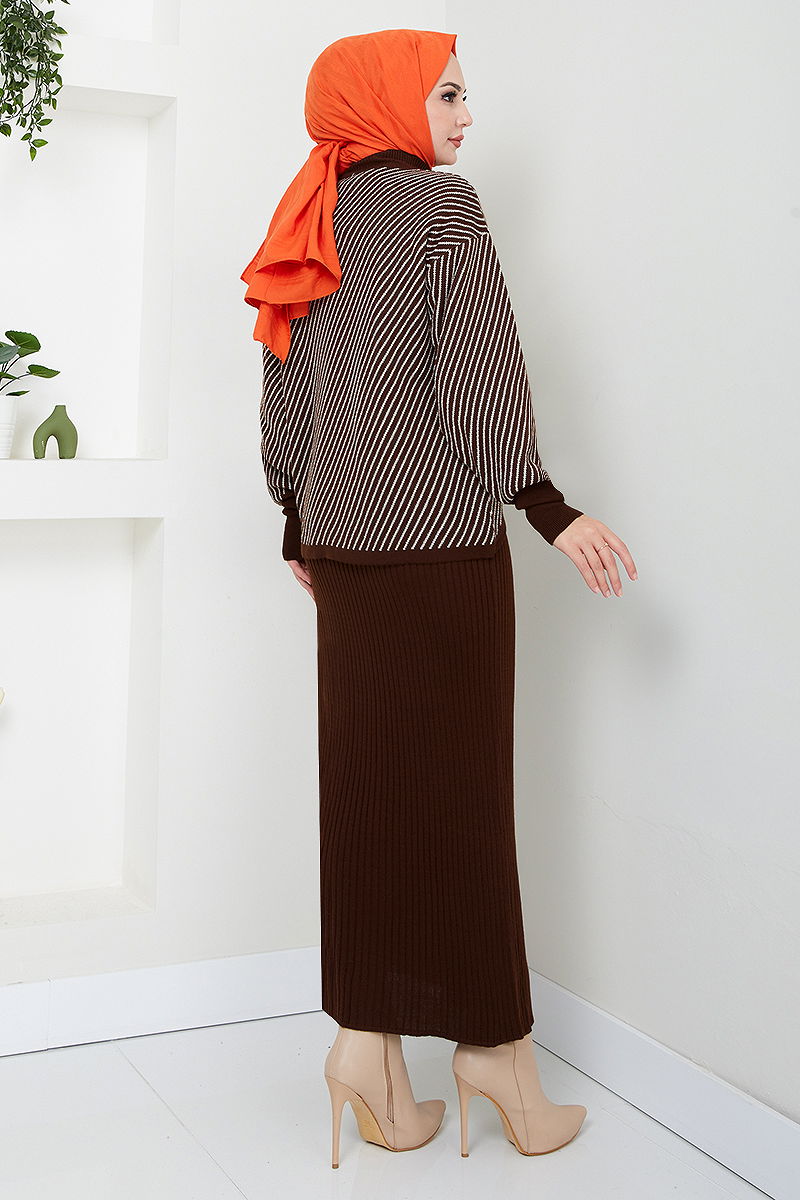 Çizgili Triko Takım 9003UZ1029-M Kahve