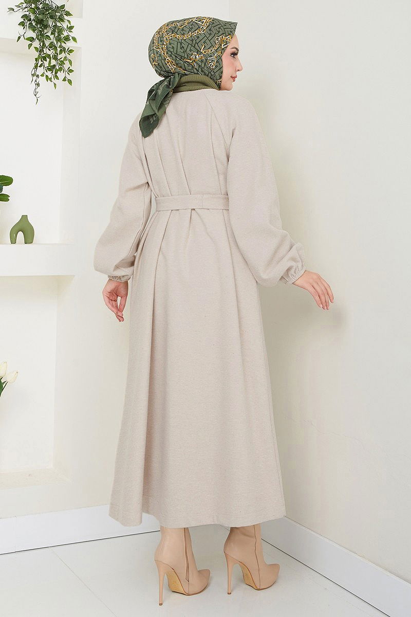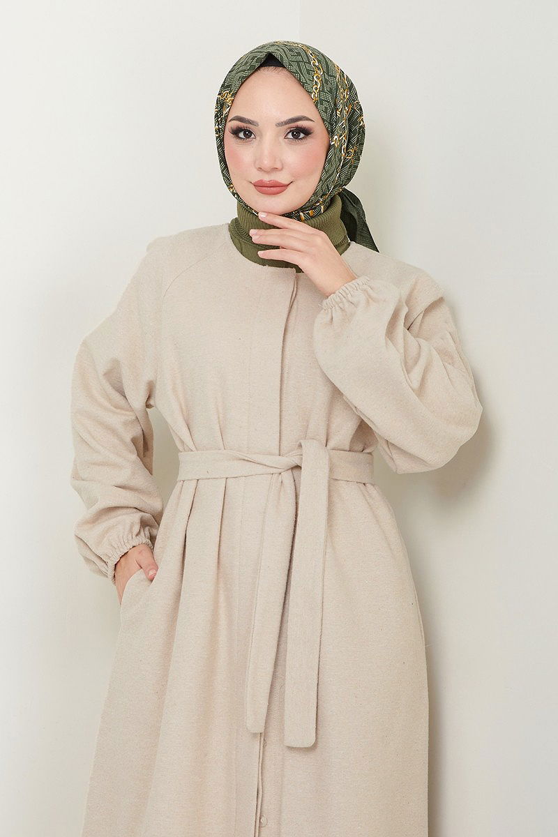 توجد أزرار متوفرة من الأمام. المنتج لديه ياقة دائرية. غير مبطنة. الحزام متضمن، ،يمكن استخدامها حسب الرغبة الجيب متاح. السوار مطاطي. قد يكون هناك اختلاف في الدرجة اللونية في المنتج بسبب التقاط الصور الفوتوغرافية.