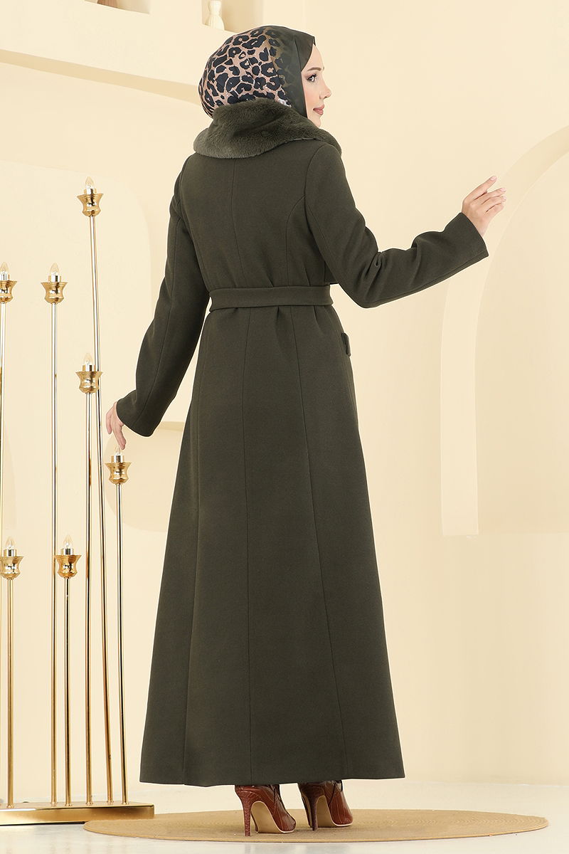 المنتج لديه ياقة الفراء. المنتج به أزرار من الأمام. مبطنة.. يتضمين المنتج ياقة من الفراء ، يمكن استخدامه حسب الرغبة الحزام متضمن، ،يمكن استخدامها حسب الرغبة الجيب متاح. قد يكون هناك اختلاف في الدرجة اللونية في المنتج بسبب التقاط الصور الفوتوغرافية.