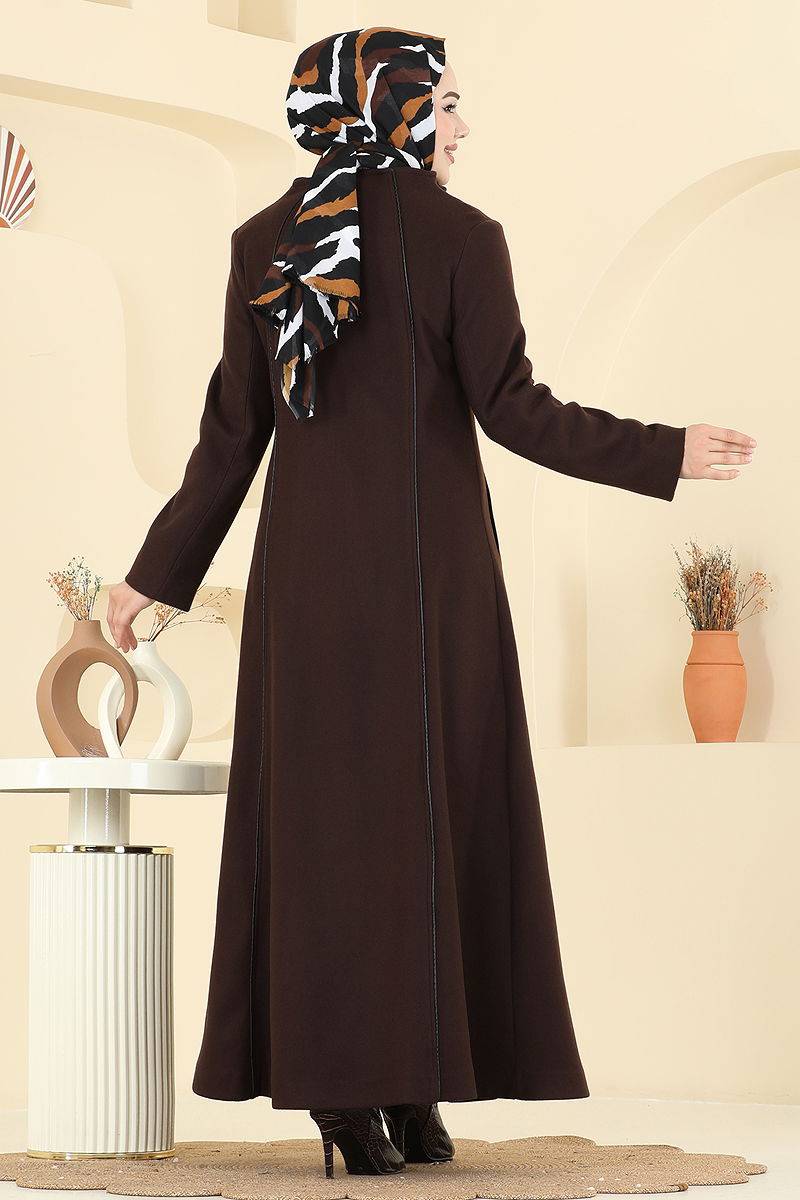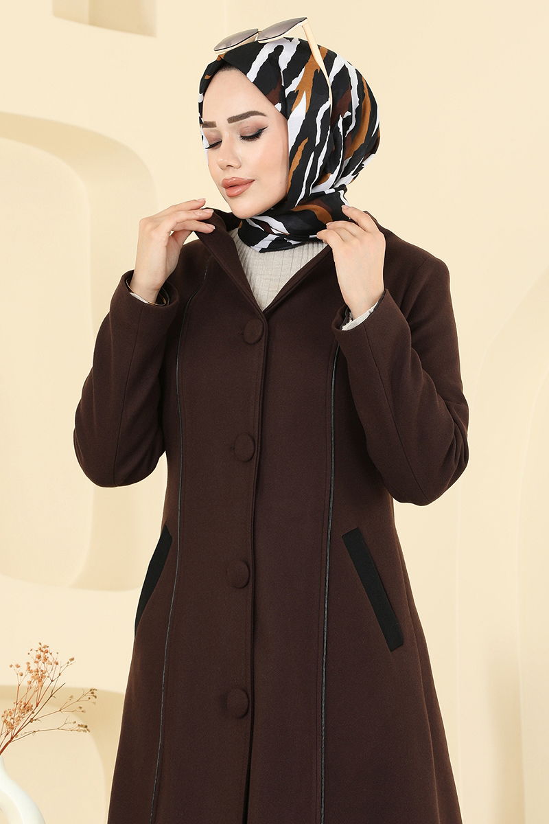 The Stripe Detail Woolen Overcoat is a staple for the autumn and winter seasons, with its elegant design and comfortable structure. The stand-up collar and buttons on the front add a stylish touch, while the woolen fabric provides superior warmth in cold weather. Offering extra comfort with its lining, this overcoat is easy to maintain with its machine washable at 30 degrees on a gentle cycle. Reflecting the elegance of modern modest fashion, this coat is an ideal choice for both daily wear and special occasions.