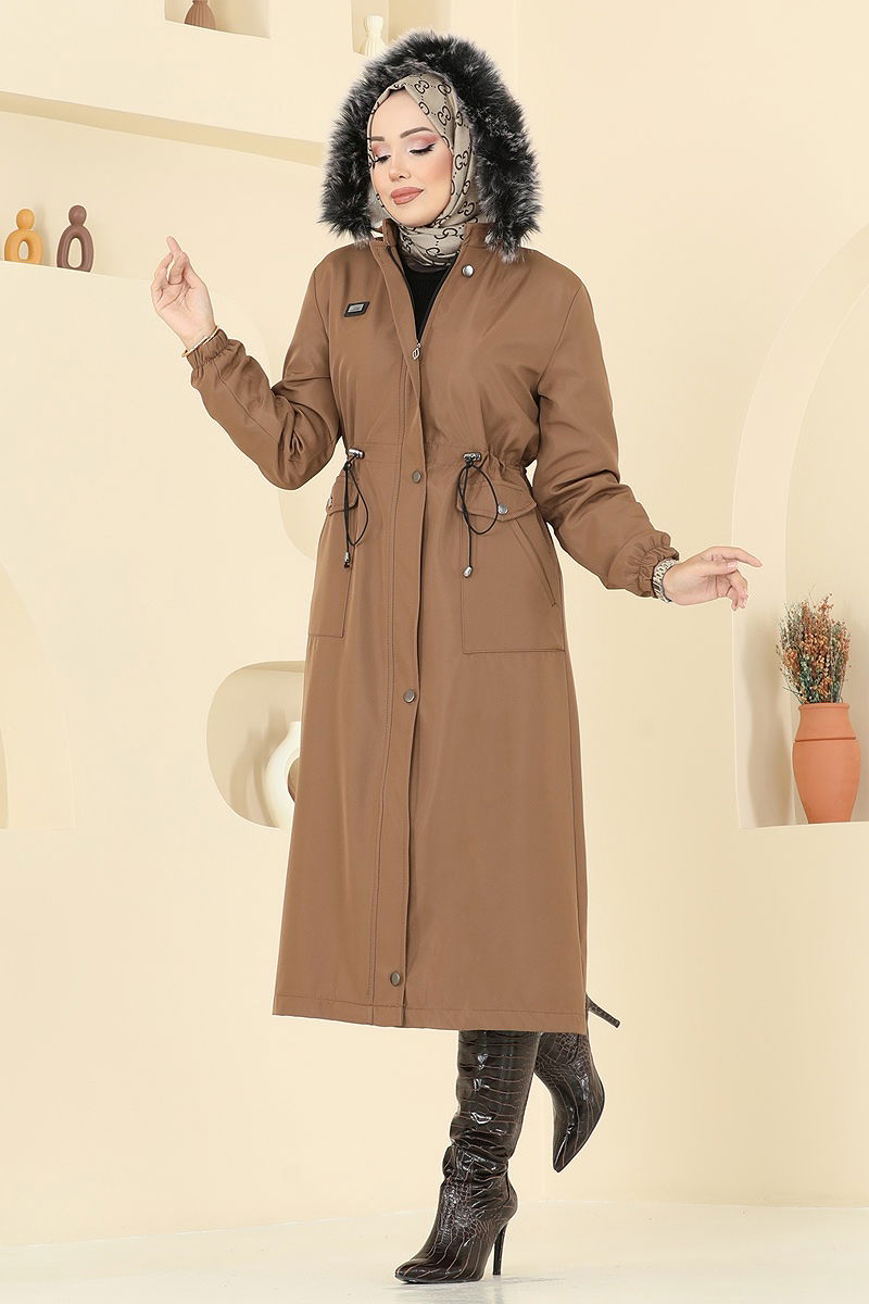 Product Feature : It is a new season hijab fashion product. It has a laced waist. The hood is detachable and can be used optionally. The product has a Hooded collar. Fur inside.. The product has a zipper at the From the front part. Pocket available. The cuff is rubberized. There may be a tonal difference in the product due to concept photo shoots.
