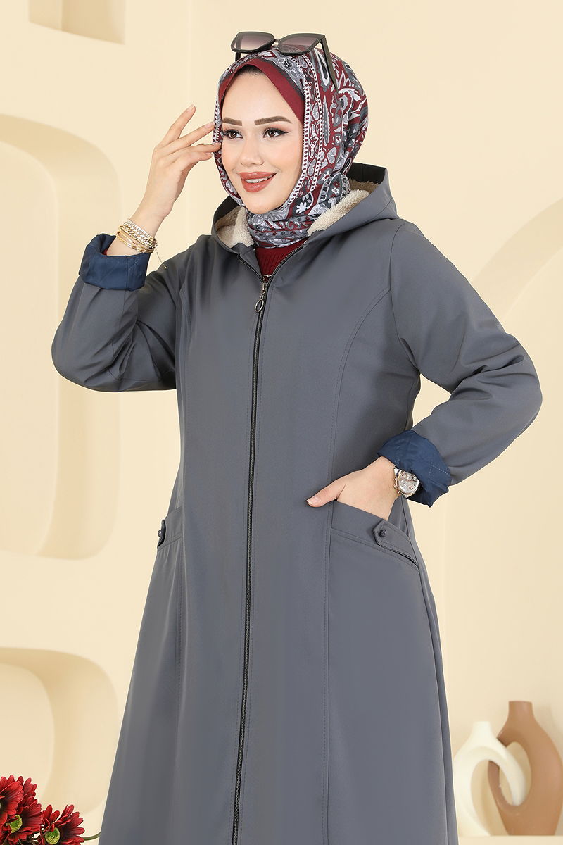 Product Feature : It is a new season hijab fashion product. The product has a Hooded collar. Fur inside.. The product has a zipper at the From the front part. Details are sewn. The hood is sewn to the product. The product has a pocket. There may be a tonal difference in the product due to concept photo shoots.