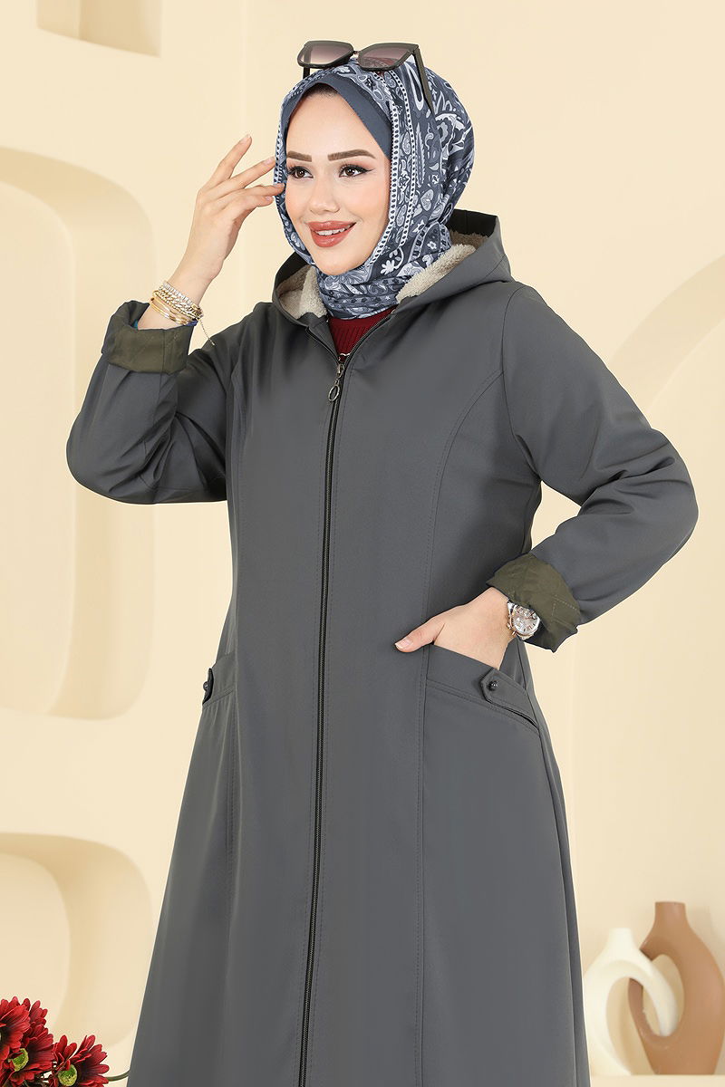 The Hooded Fur-Lined Coat is an indispensable item for the winter months, designed to keep you warm on cold days. This hijab coat, made from bonded fabric, offers both elegance and comfort. Its hooded design and interior fur provide maximum warmth, while the front zipper offers ease of use. Ideal for both everyday wear and special occasions, this coat will become a staple in your wardrobe.