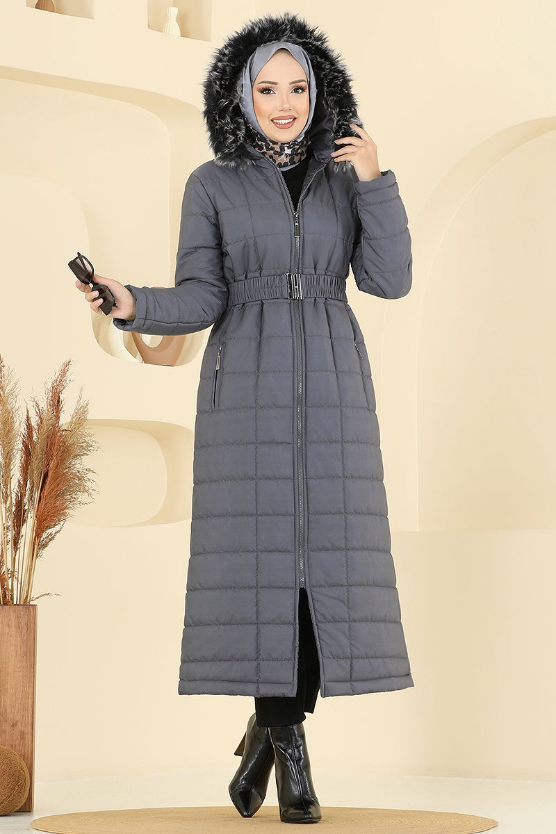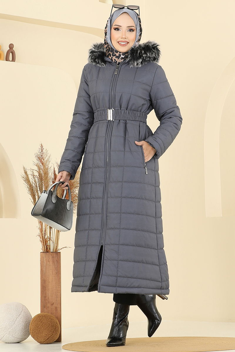 Product Feature : It is a new season hijab fashion product. The product has a Hooded collar. It is lined.. The product has a zipper at the From the front part. The fur is sewn into the product. The hood is sewn to the product. Belt included, optional not available. Pocket available. There may be a tonal difference in the product due to concept photo shoots.