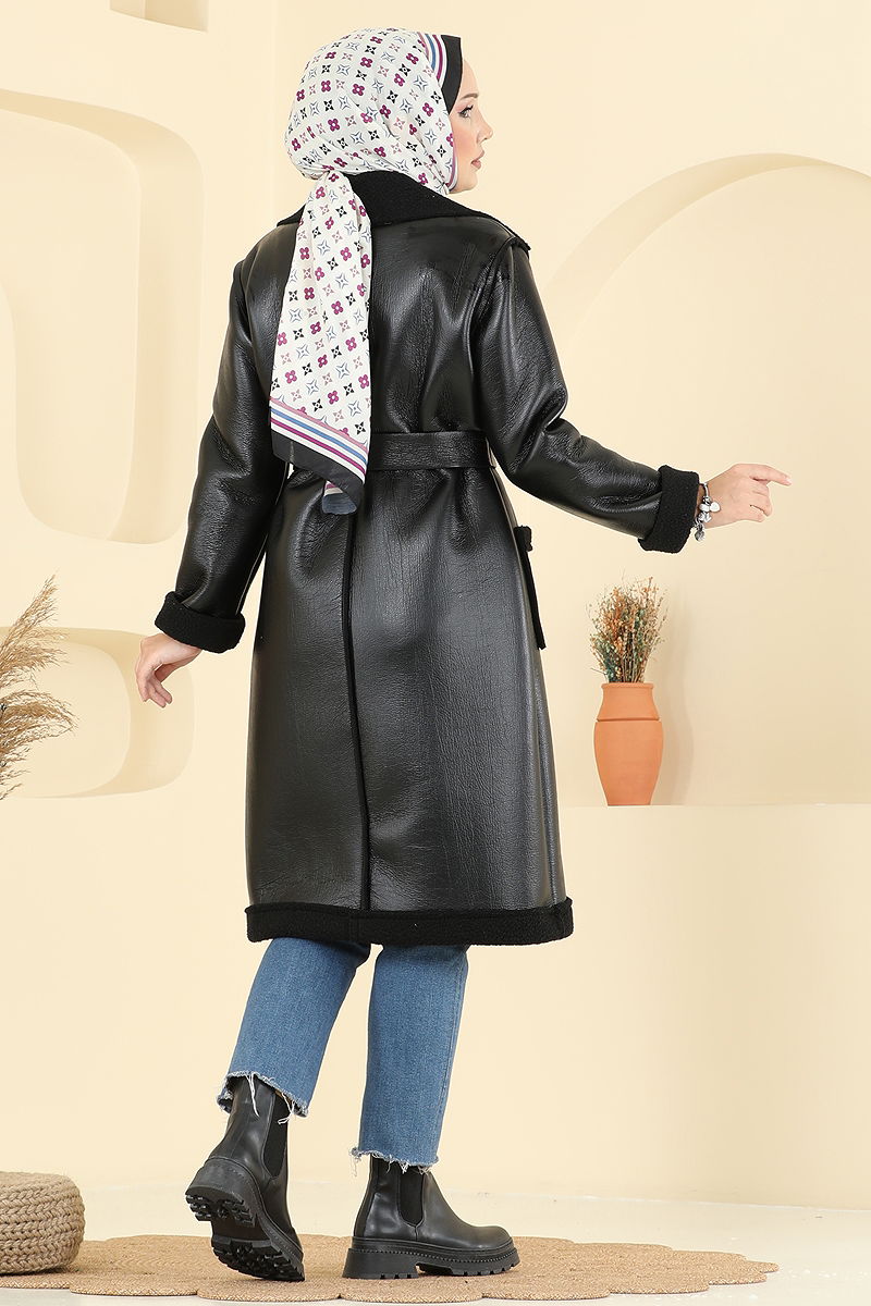 Elevate your style with the Faux Fur Lined Leather Coat, an essential for the cold Autumn and Winter days. Made from high-quality leather and soft faux fur, this coat is suitable for gentle washing at 30 degrees, offering easy maintenance. The double-breasted collar and lined design provide comfort, while the aesthetic belt detail catches the eye. The belt can be optionally used, and its pocketed design offers practicality. This special design keeps you warm in cold weather while completing your style.
