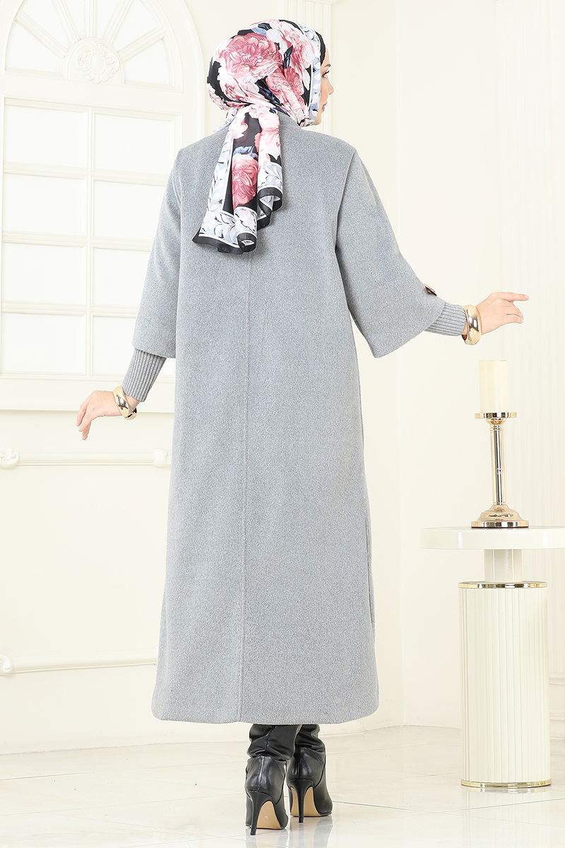 Accessorized Buttoned Angora Coat is a stylish choice tailored for modest fashion. Ideal for autumn and winter, this coat is made from angora fabric and can only be dry cleaned. Featuring a mandarin collar and a lined design, it offers both comfort and elegance. The front of the coat includes practical snap buttons for easy wearing and decorative buttons for a touch of style, along with pockets for functionality. This product is designed to add a refined touch to any outfit.
