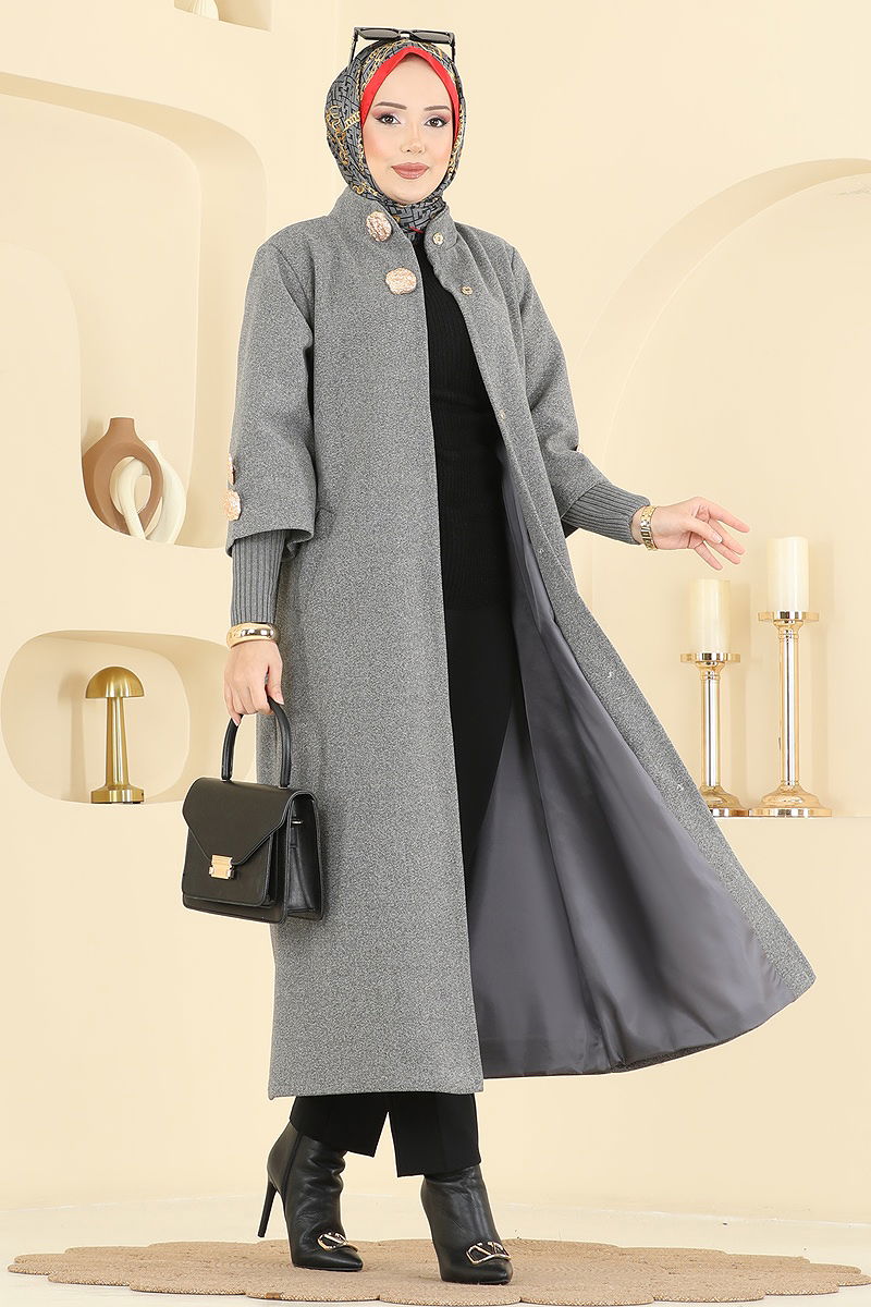 Perfect for autumn and winter seasons, the Cuff Knit Detailed Coat is an excellent choice for modest fashion, offering both style and comfort. Made from cashmere fabric, this coat can be easily cleaned with a gentle wash at 30 degrees Celsius. It features a semi-mandarin collar design, lined construction, and snap buttons on the front for convenient use. The triko detail on the cuffs and stitched accessories stand out, enhancing its stylish appearance, while functional pockets add to its practicality.