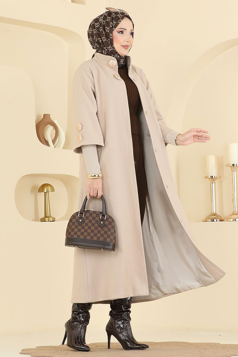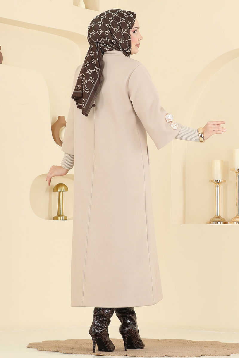 Perfect for autumn and winter seasons, the Cuff Knit Detailed Coat is an excellent choice for modest fashion, offering both style and comfort. Made from cashmere fabric, this coat can be easily cleaned with a gentle wash at 30 degrees Celsius. It features a semi-mandarin collar design, lined construction, and snap buttons on the front for convenient use. The triko detail on the cuffs and stitched accessories stand out, enhancing its stylish appearance, while functional pockets add to its practicality.