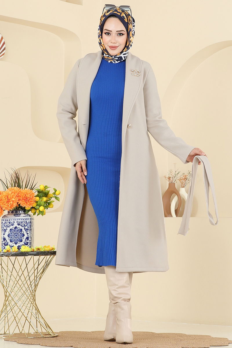 Product Feature : It is a new season hijab fashion product. There is a button available from the front. The product has a Double-breasted collar. Unlined. Belt included, optional not available. The product has a pocket. There may be a tonal difference in the product due to concept photo shoots.
