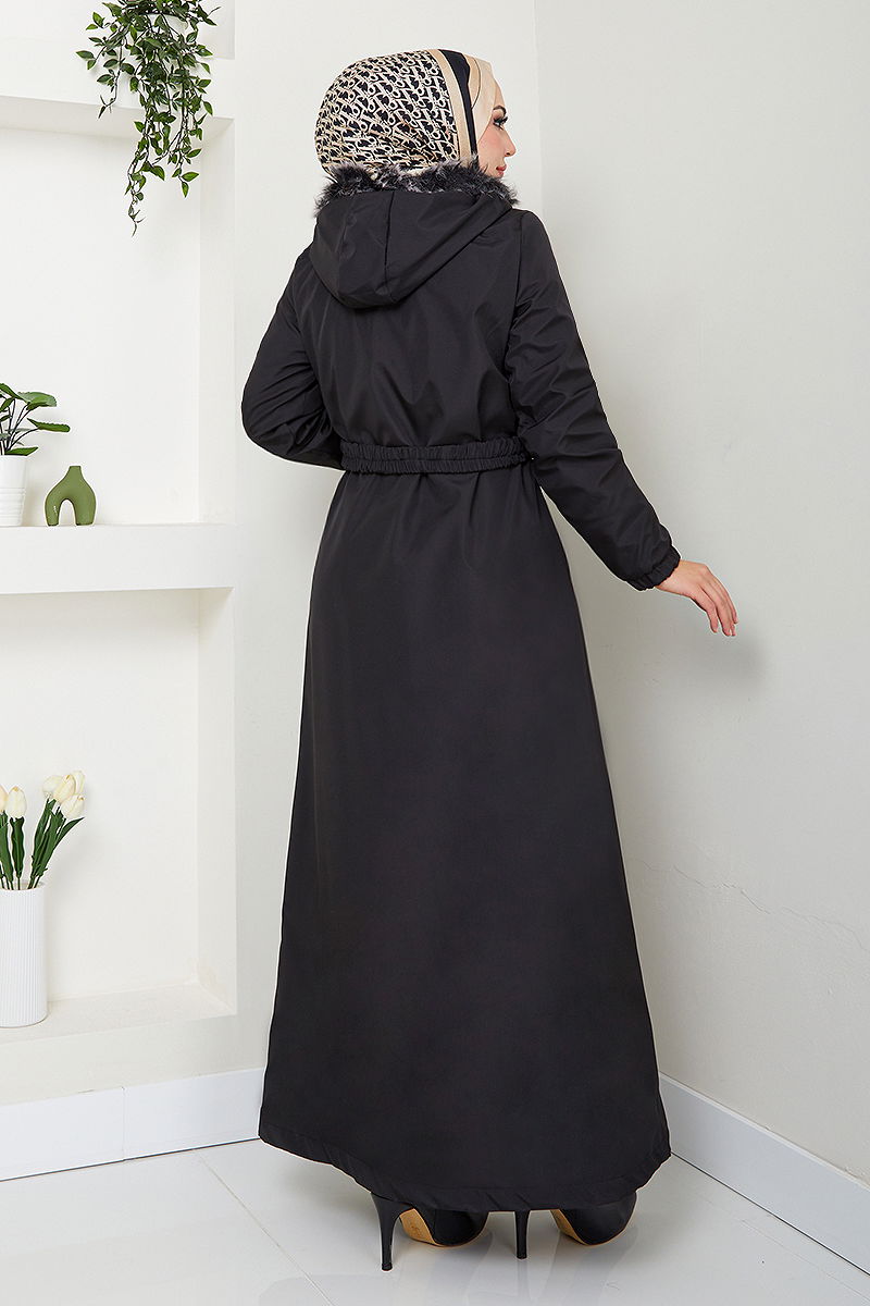 المنتج لديه ياقة مع قبعة. البطانة مبطنة بالفرو.. المنتج به سحاب في جزء من الأمام. يتم خياطة الفراء على المنتج. الحزام متضمن، ،يمكن استخدامها حسب الرغبة يتضمن المنتج القبعة ويمكن استخدامها حسب الرغبة الجيب متاح. قد يكون هناك اختلاف في الدرجة اللونية في المنتج بسبب التقاط الصور الفوتوغرافية.