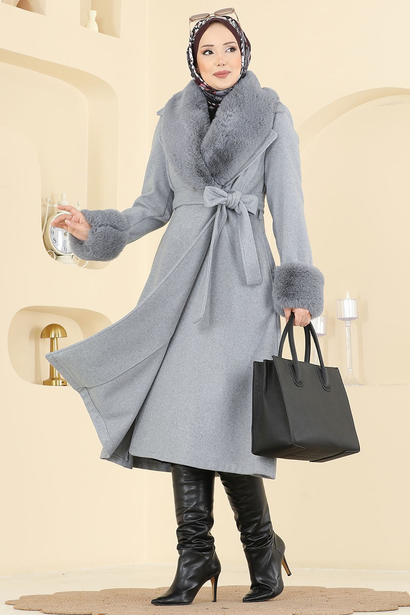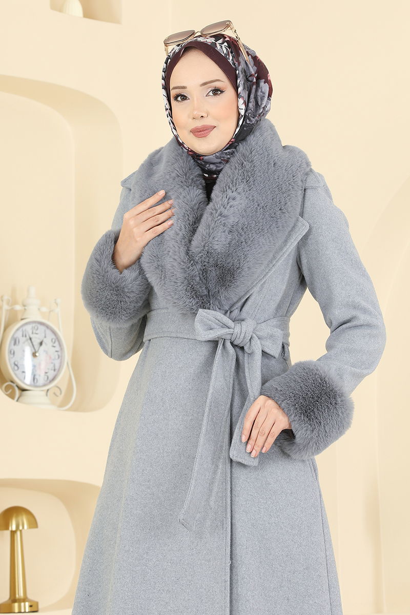 المنتج لديه ياقة الفراء. غير مبطنة. المنتج يحتوي على حزام خصر مُخاط. يتم تضمين الفراء في المنتج، ولا يجوز استخدامه اختيارياً. الحزام متضمن، ،يمكن استخدامها حسب الرغبة الجيب متاح. الاكمام مزينة بالفرو قد يكون هناك اختلاف في الدرجة اللونية في المنتج بسبب التقاط الصور الفوتوغرافية.