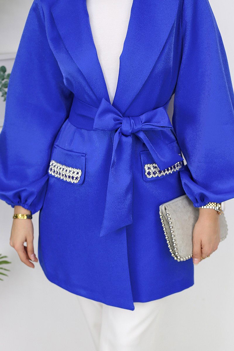 (غير مبطن.)ياقة الجاكيت.المنتج يتضمن الحزام، .يمكن عدم الاستخدام حسب الرغبة.المعصم ذو مطاط.خصر البنطال ذو مطاط.تفاصيل الجيب عبارة عن اكسسوار.قد تختلف درجة لون المنتج بشكل قليل على الواقع عن الصورة الموجودة بسبب إضاءة التصوير
