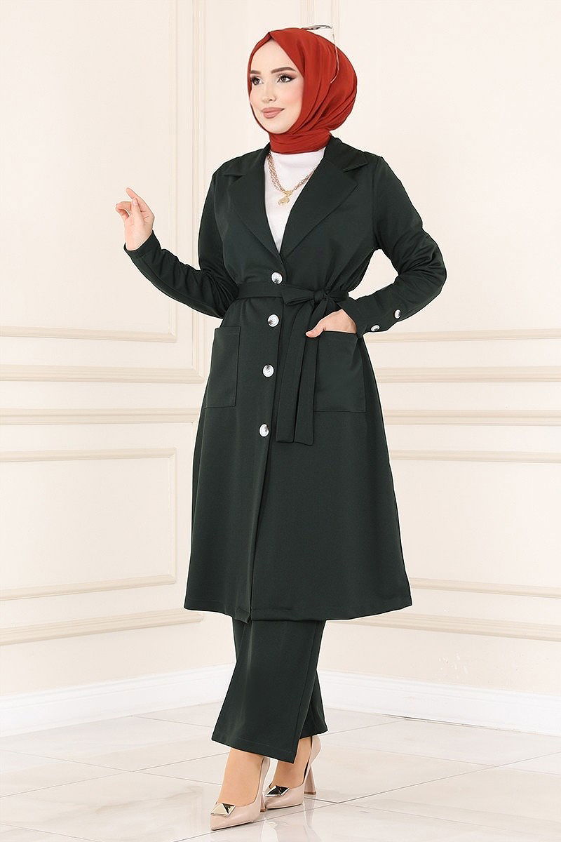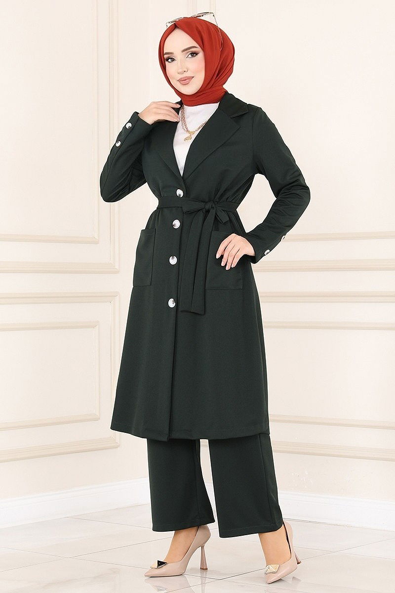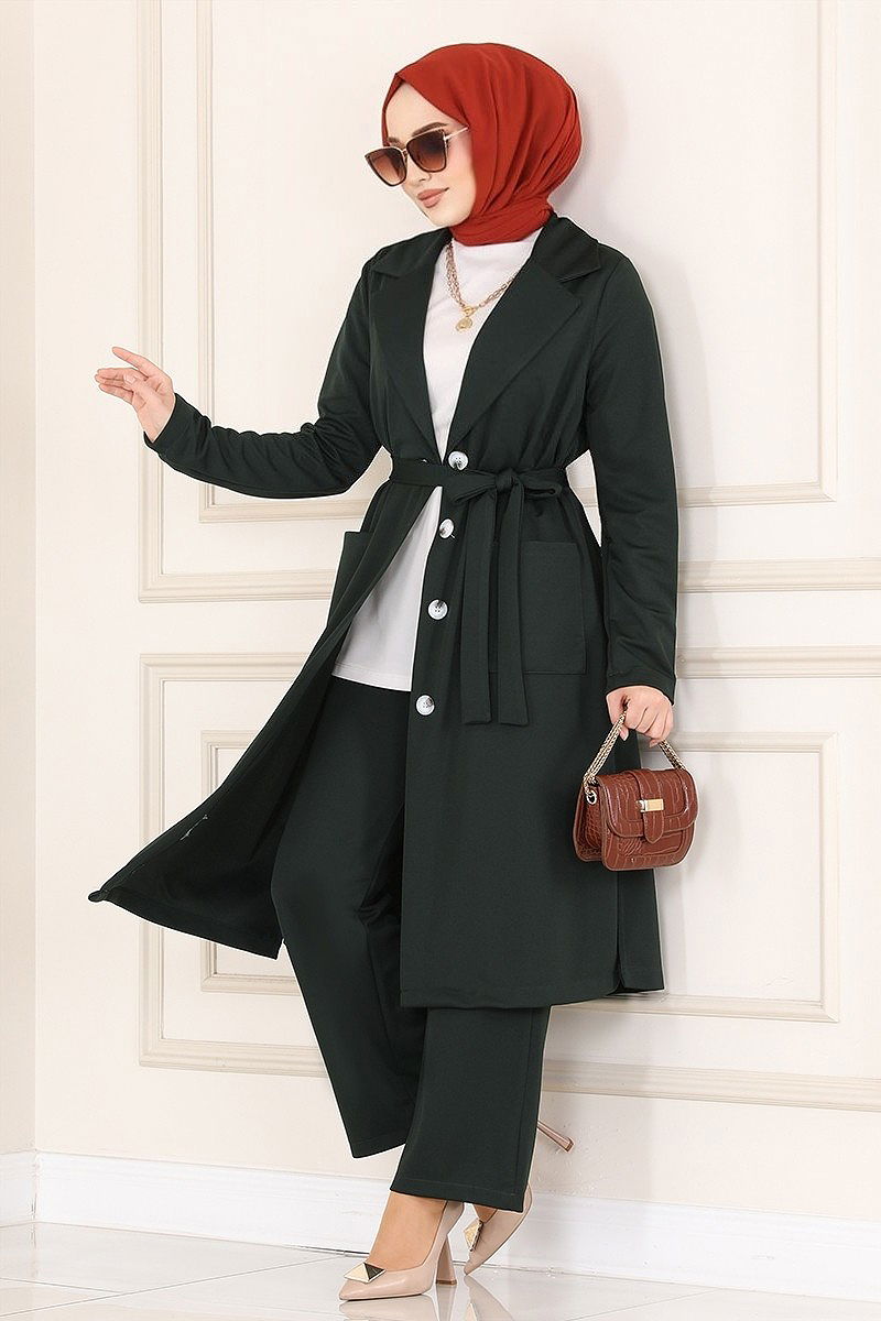 (غير مبطن.)ياقة مزدوجة.مزود بازار اماميةالمنتج يتضمن الحزام، .يمكن عدم الاستخدام حسب الرغبة.ازرار المعصم عبارة عن اكسسوار.خصر البنطال ذو مطاط.يحتوي على اجيب.الملحقات ليست مدرجة في المنتج.قد تختلف درجة لون المنتج بشكل قليل على الواقع عن الصورة الموجودة بسبب إضاءة التصوير