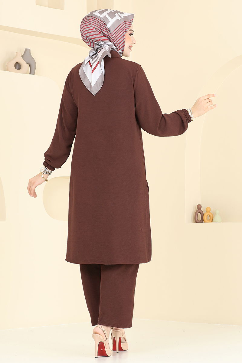 المنتج لديه ياقة القميص. المنتج به أزرار من الأمام. الازرار الموجود بالفتحات اكسسوار. غير مبطنة. خصر البنطال مرن. السوار مطاطي. قد يكون هناك اختلاف في الدرجة اللونية في المنتج بسبب التقاط الصور الفوتوغرافية.
