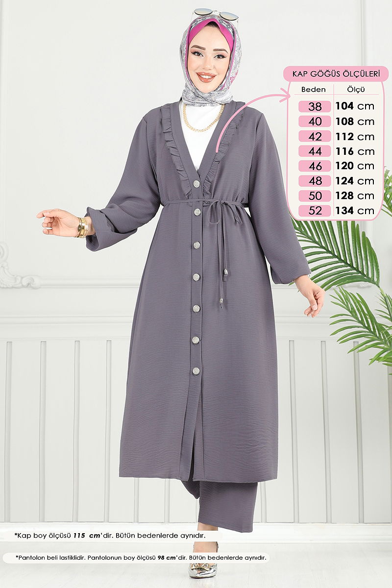 المنتج لديه ياقة ياقة V. المنتج به أزرار من الأمام. غير مبطنة. الحزام متضمن، ،يمكن استخدامها حسب الرغبة البلوزة غير متضمنة. صُنعت عينة من المجموعة مع البلوزة لإظهار الاستخدام المقصود للمنتج. الملحقات غير متضمنة. خصر البنطال مرن. السوار مطاطي. قد يكون هناك اختلاف في الدرجة اللونية في المنتج بسبب التقاط الصور الفوتوغرافية.