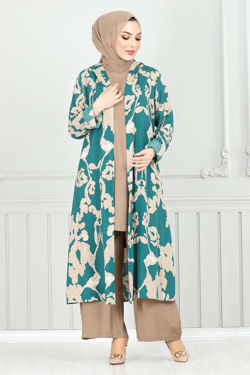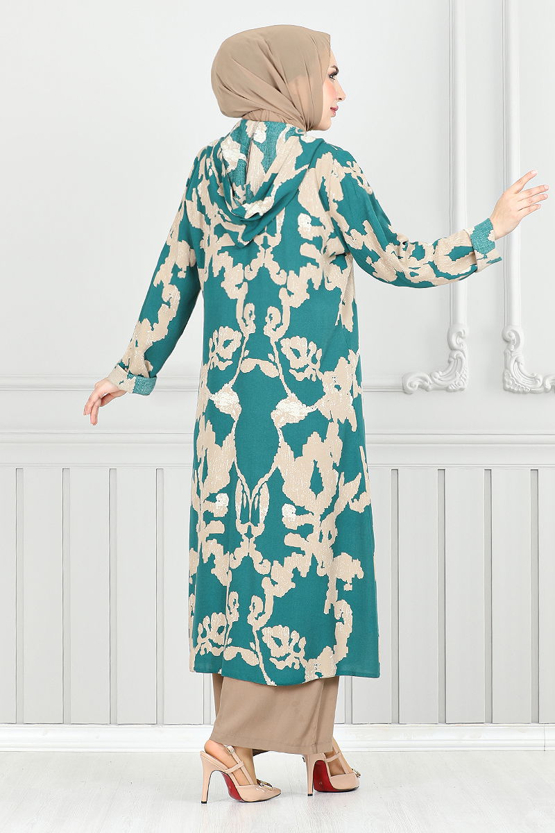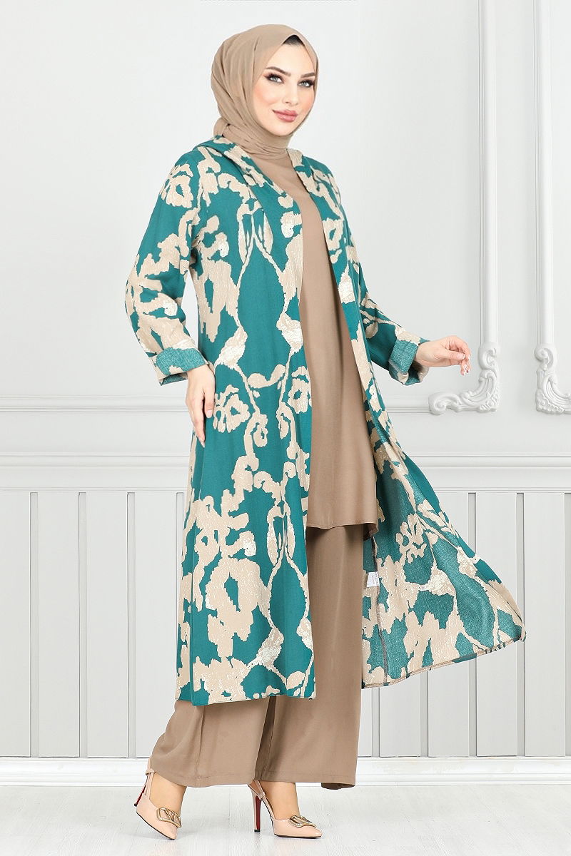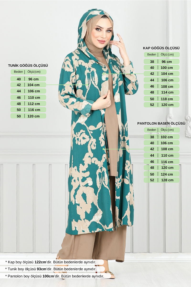 Patterned Triple Viscose Suit is a hijab clothing product that attracts attention with its combination model. This suit, which can be used easily in spring and summer seasons, can be cleaned in a practical way thanks to its hand washable feature. Made of first-class viscose fabric, the product has a hooded collar design. The unlined product has the features of the size 38 model. The inner blouse is designed as sleeveless, while the waist of the pants has an elastic structure. The suit includes a tunic, pants and a hooded top. Color options of the suit; Laci & Vision, Damson & Vision, Petrol & Vision, Black & Vision. Size options; 50, 42, 52, 40, 38, 48, 48, 46, 44.