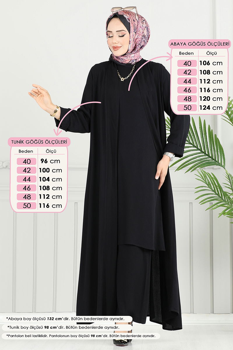 تشمل المنتجات المدمجة : عباءة, بلوز و بنطلون.