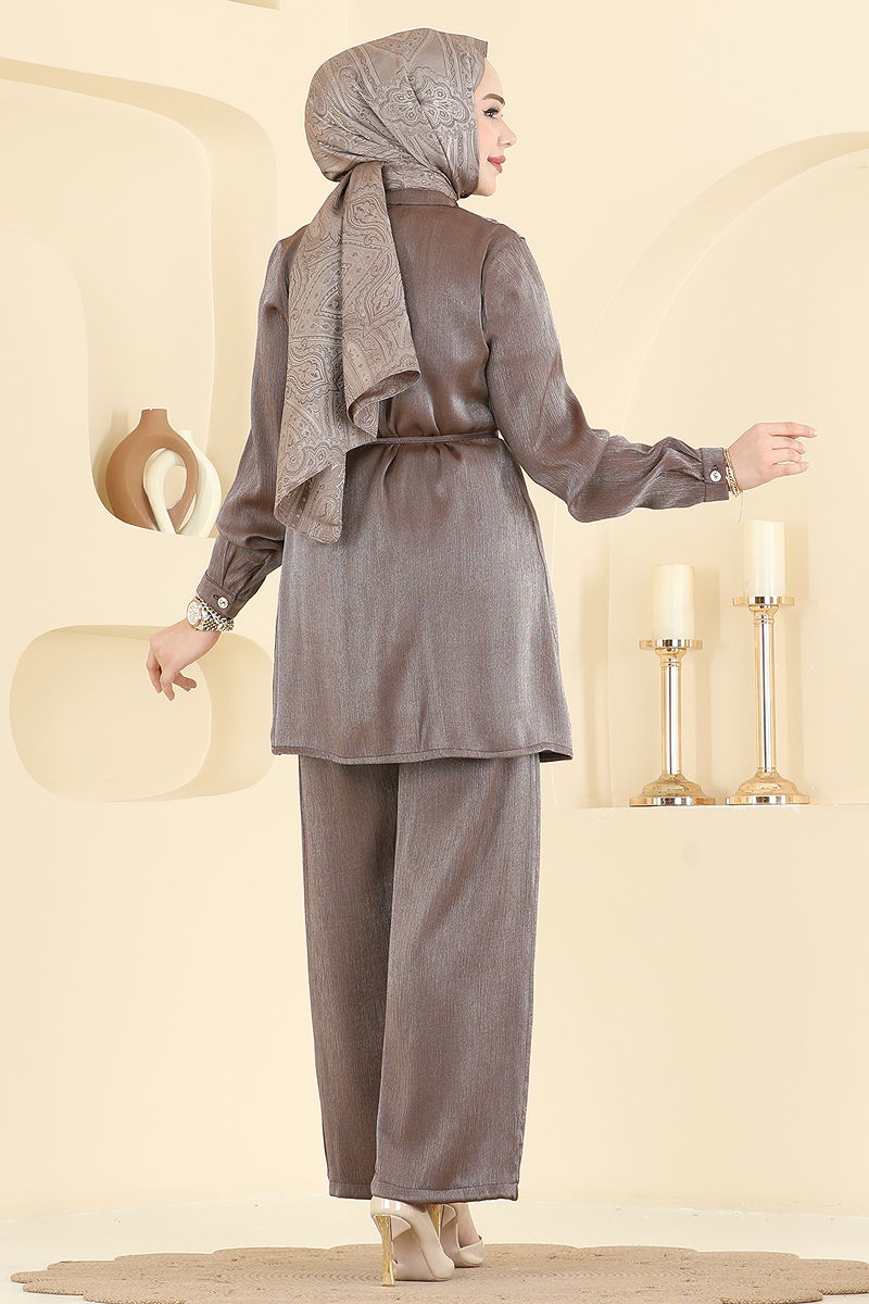 يوجد جيب في البنطلون . المنتج لديه ياقة نصف بيضوية. المنتج به أزرار نصف أمامي. غير مبطنة. يتضمن المنتج الأربطة ويمكن استخدامها حسب الرغبة خصر البنطال مرن. أزرار الكفة نشطة. قد يكون هناك اختلاف في الدرجة اللونية في المنتج بسبب التقاط الصور الفوتوغرافية.