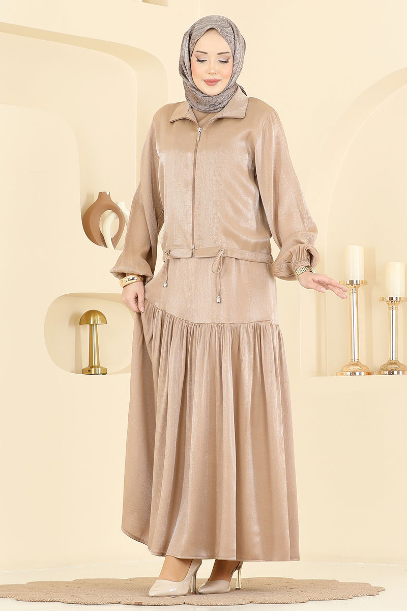 المنتج لديه ياقة القميص. غير مبطنة. المنتج به سحاب في جزء من الأمام. لا يتم ربطهما معاً. يمكن استخدام الثوب الداخلي أيضاً بشكل منفصل. الفستان الداخلي بدون أكمام. الإكسسوارات غير متضمنة. السوار مطاطي. قد يكون هناك اختلاف في الدرجة اللونية في المنتج بسبب التقاط الصور الفوتوغرافية.