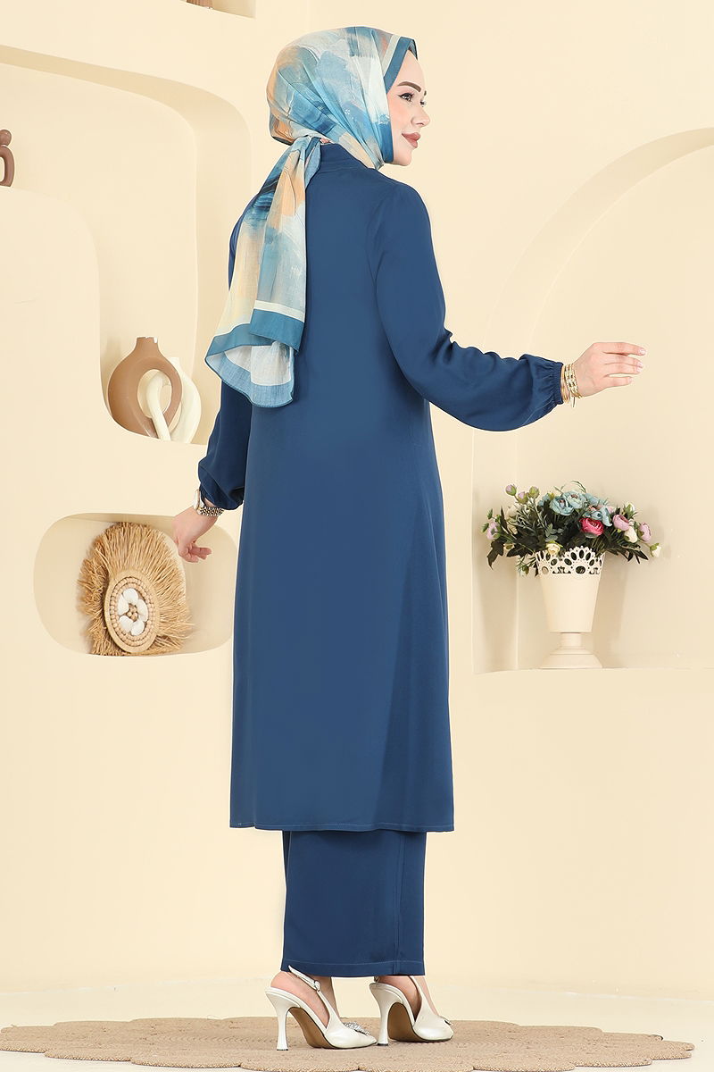 Product Feature : It is a new season hijab fashion product. There are buttons available from the front. The product has a Half Judge collar. The product has From the front buttons. The collar tie detail is stitched. The waist of the trousers is elastic. The cuff is rubberized. There may be a tonal difference in the product due to concept photo shoots.