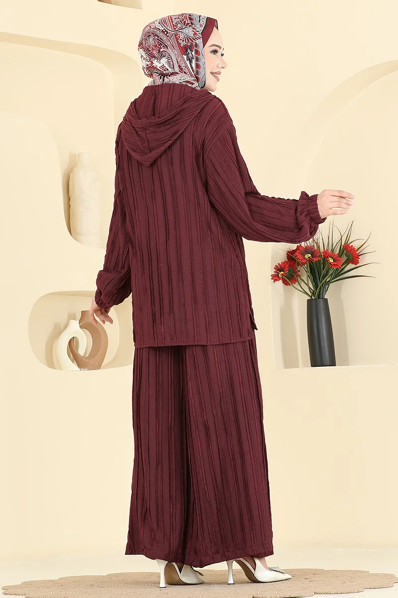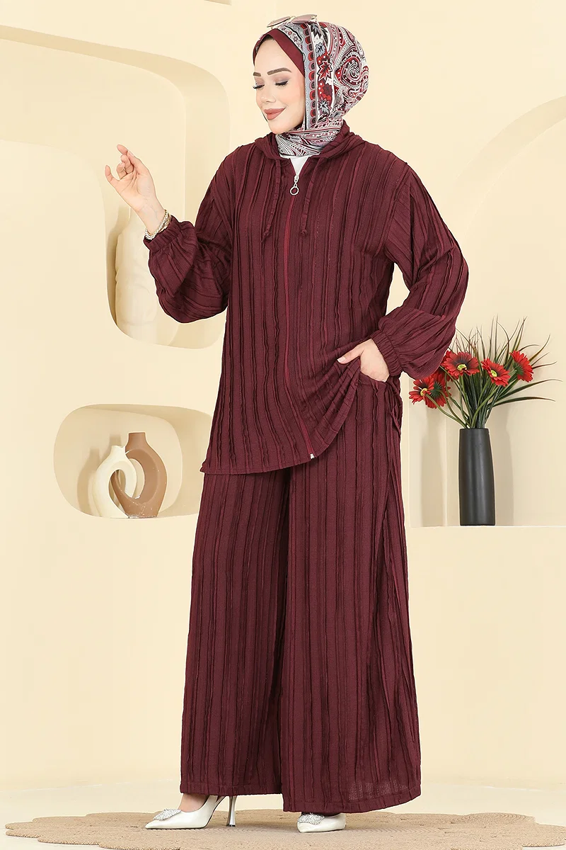 Product Feature : It is a new season hijab fashion product. The trousers have pockets. The product has a Hooded collar. The tunic has a side slash.. Unlined. The product has a zipper at the From the front part. Suitable for daily use. The waist of the trousers is elastic. The cuff is rubberized. There may be a tonal difference in the product due to concept photo shoots.