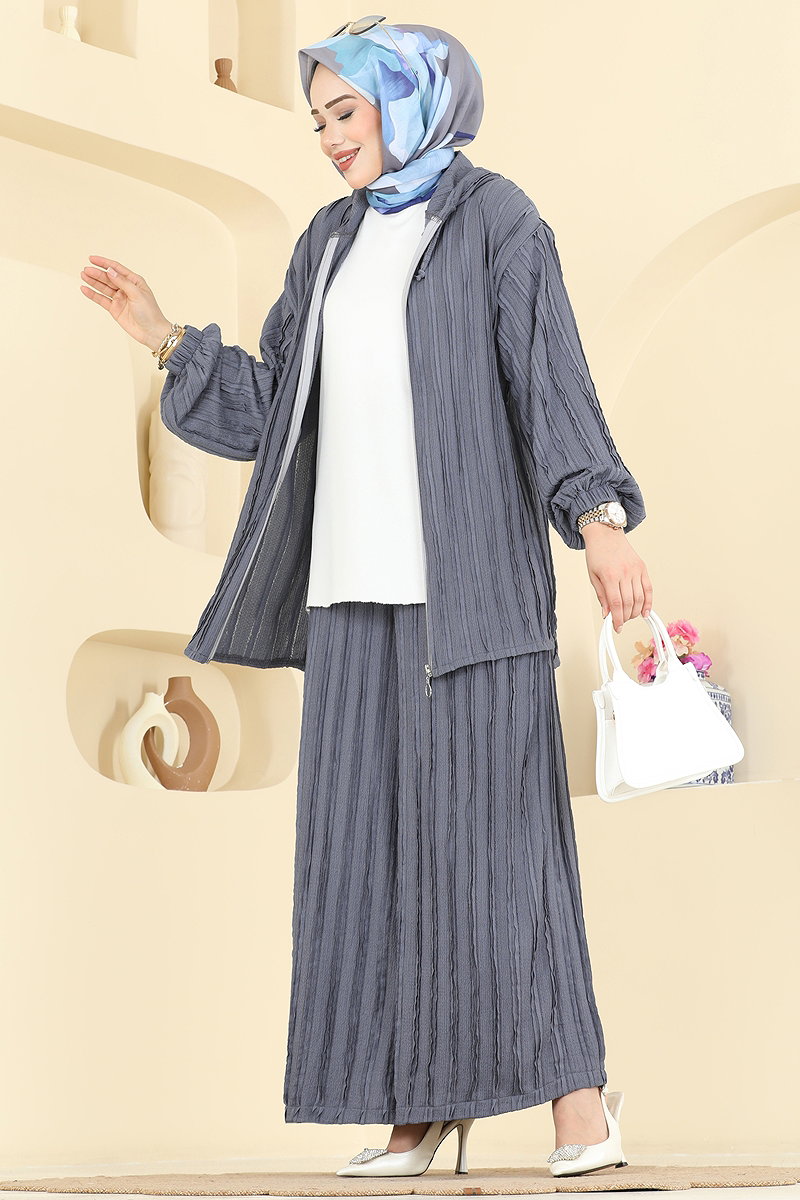 يوجد جيب في البنطلون . المنتج لديه ياقة مع قبعة. البلوز تحتوي على فتحة. غير مبطنة. المنتج به سحاب في جزء من الأمام. مناسب للاستخدام اليومي. خصر البنطال مرن. السوار مطاطي. قد يكون هناك اختلاف في الدرجة اللونية في المنتج بسبب التقاط الصور الفوتوغرافية.