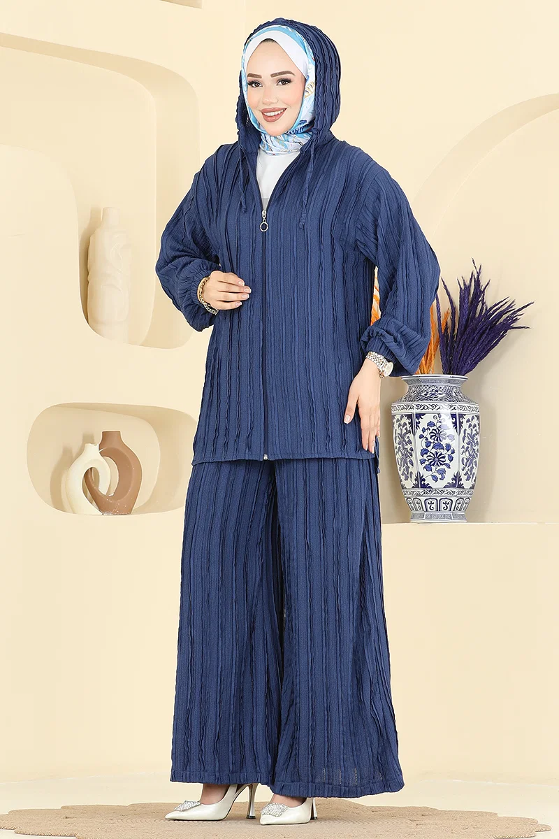 يوجد جيب في البنطلون . المنتج لديه ياقة مع قبعة. البلوز تحتوي على فتحة. غير مبطنة. المنتج به سحاب في جزء من الأمام. مناسب للاستخدام اليومي. خصر البنطال مرن. السوار مطاطي. قد يكون هناك اختلاف في الدرجة اللونية في المنتج بسبب التقاط الصور الفوتوغرافية.