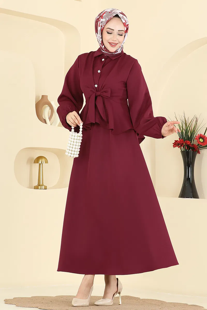 يوجد حزام يمكن استخدامه من الأمام. المنتج لديه ياقة القميص. المنتج به أزرار نصف أمامي. غير مبطنة. يتم خياطة الحزام على المنتج. .خصر التنورة مرن السوار مطاطي. قد يكون هناك اختلاف في الدرجة اللونية في المنتج بسبب التقاط الصور الفوتوغرافية.