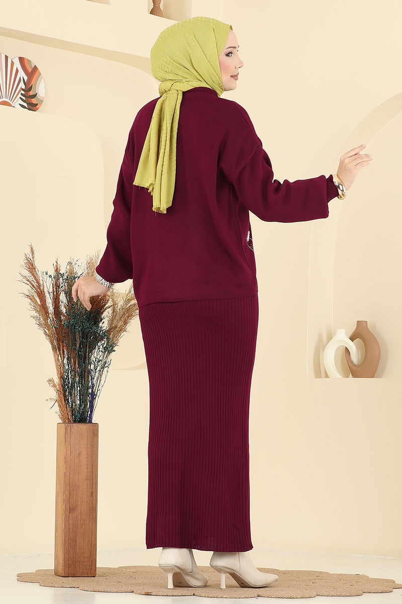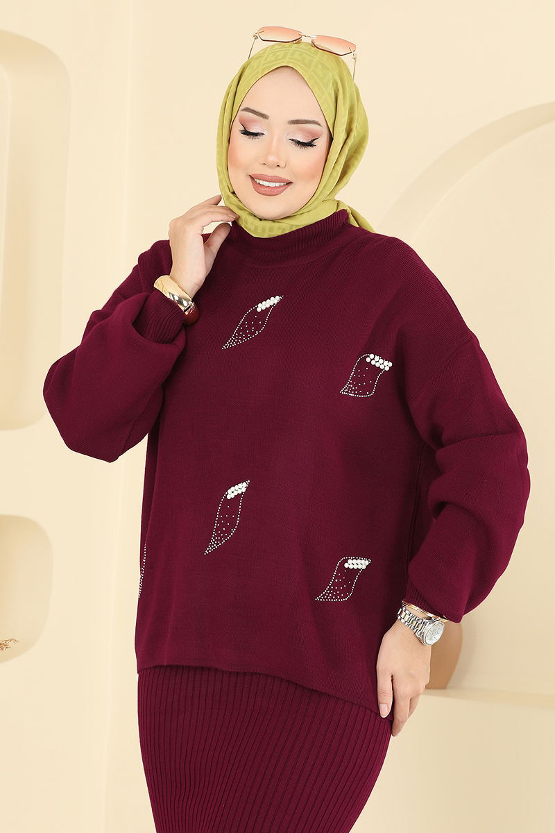 Elegant and sophisticated, the Pearl-Detailed Dress Suit is specially designed for modest wear. Ideal for autumn and winter, this combination impresses with its embellished details. It is recommended to wash the product inside out and iron on the reverse to protect the embellishments. Made from knit fabric, this suit is unlined, offering a light and comfortable fit. The pearl details are carefully stitched, and the inner dress can be worn separately if desired. The tunic and the inner dress are sleeveless and available in standard sizes.