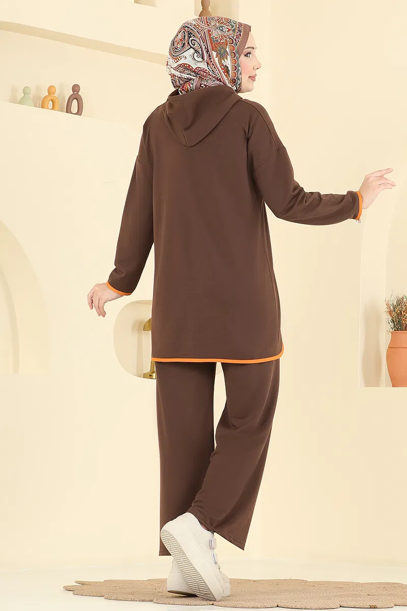 The Hooded Bias Tape Two String Set COMBINATION is a modest wear piece that can be comfortably worn across all seasons. Designed with an attached hood and an unlined structure for comfort, this set is suitable for gentle wash at 30 degrees and does not show through. Its elastic waistband trousers ensure comfort throughout the day.