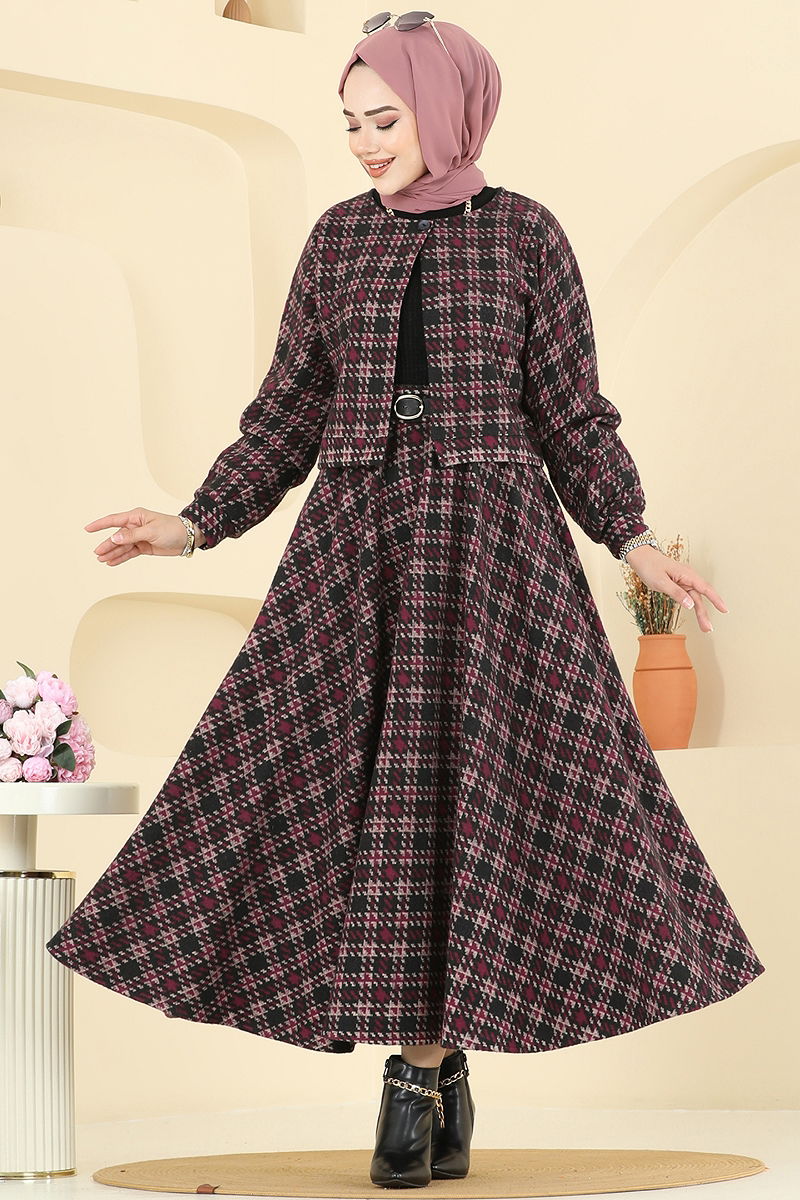 The Jacketed Winter Hijab Suit COMBINE model is a hijab product. It can be used in Autumn and Winter seasons. It should be washed at 30 degrees without squeezing. It is made of first-class Winter Knitted fabric. The product has a Bicycle collar and is buttoned from the front. It is liningless. The product has a side zip. (The product on the model is size 38.) The skirt waist is side-zipped and half elasticated. JACKET and SKIRT
