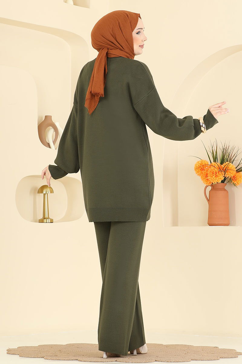 The Embroidered Sequin Knit Set, model, offers elegance and comfort together in modest fashion. Suitable for Autumn and Winter, this set features a washable at gentle 30 degrees. The warm and breathable knit fabric provides comfort all day long. With its crew neck and unlined design, it presents a modern look. The tunic and pants are meticulously embroidered with sequins and beads, while the elastic waist of the pants offers maximum comfort.