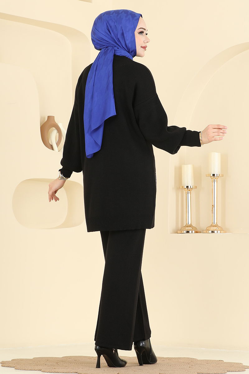 The Bejeweled Knitwear Set COMBO is a modern and elegant modest wear outfit. Perfect for Autumn and Winter seasons, this ensemble includes a tunic and pants adorned with crystal stone details, made from knit fabric for a soft texture. The pants feature an elastic waistband for comfort. Can be washed gently at 30 degrees Celsius. Add a touch of freshness to your daily activities with this stylish and comfortable set.