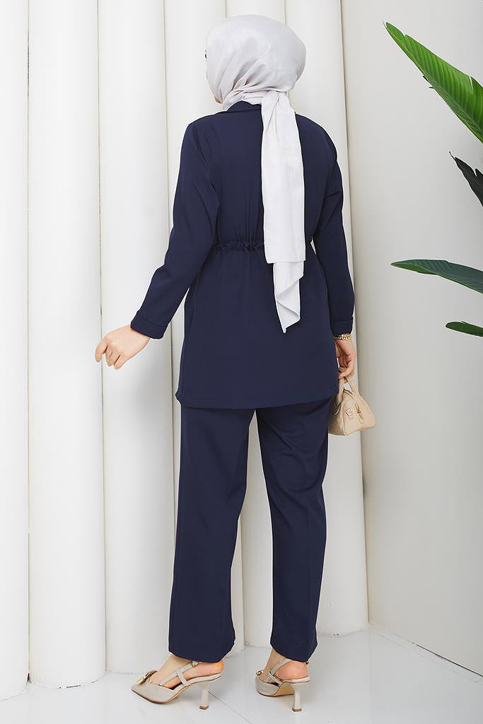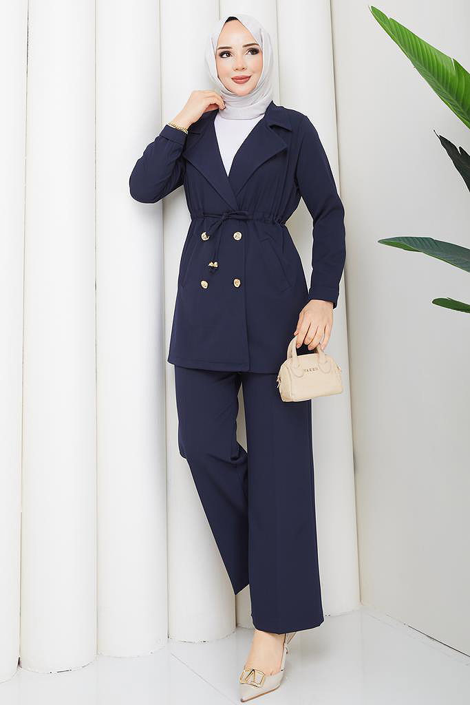 Product Feature : It is a new season hijab fashion product. It has a laced waist. The product has a Double-breasted collar. The product has From the front buttons. Unlined. Pocket available. The waist of the trousers is elastic. There may be a tonal difference in the product due to concept photo shoots.