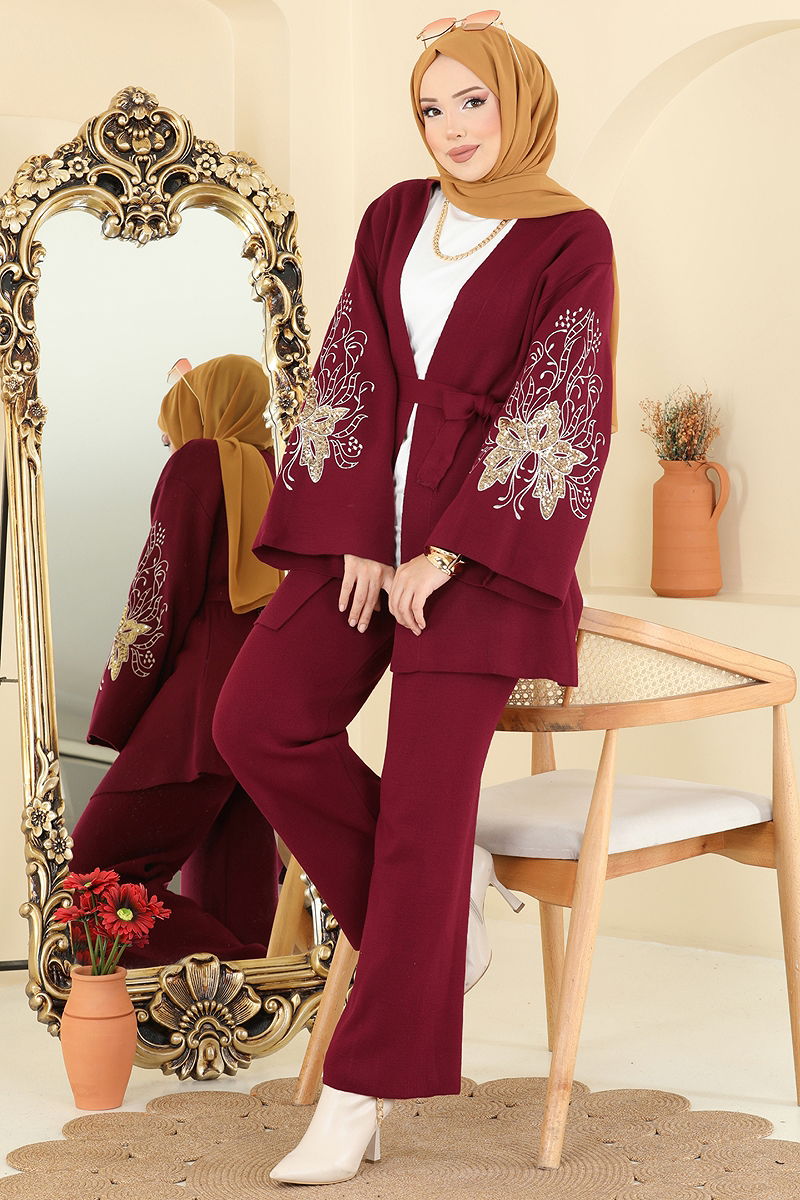 Product Feature : It is a new season hijab fashion product. The product has a Double-breasted collar. Unlined. Sequin sequin detail is sewn. Belt included, optional not available. The waist of the trousers is elastic. There may be a tonal difference in the product due to concept photo shoots.