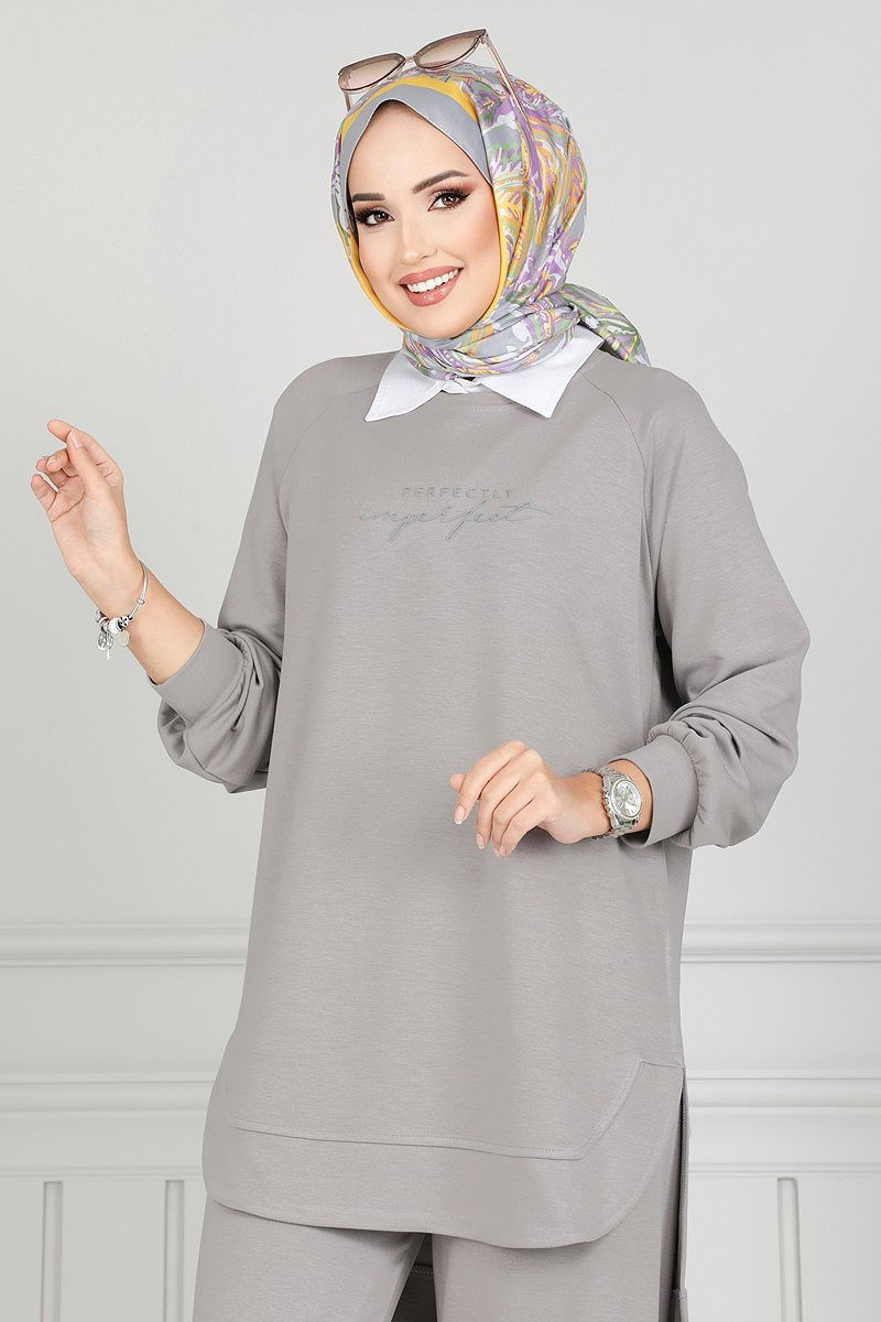 Product Feature : It is a new season hijab fashion product. The product has a Cycling collar. The tunic has a side slash.. Unlined. The waist of the trousers is elastic. There may be a tonal difference in the product due to concept photo shoots.
