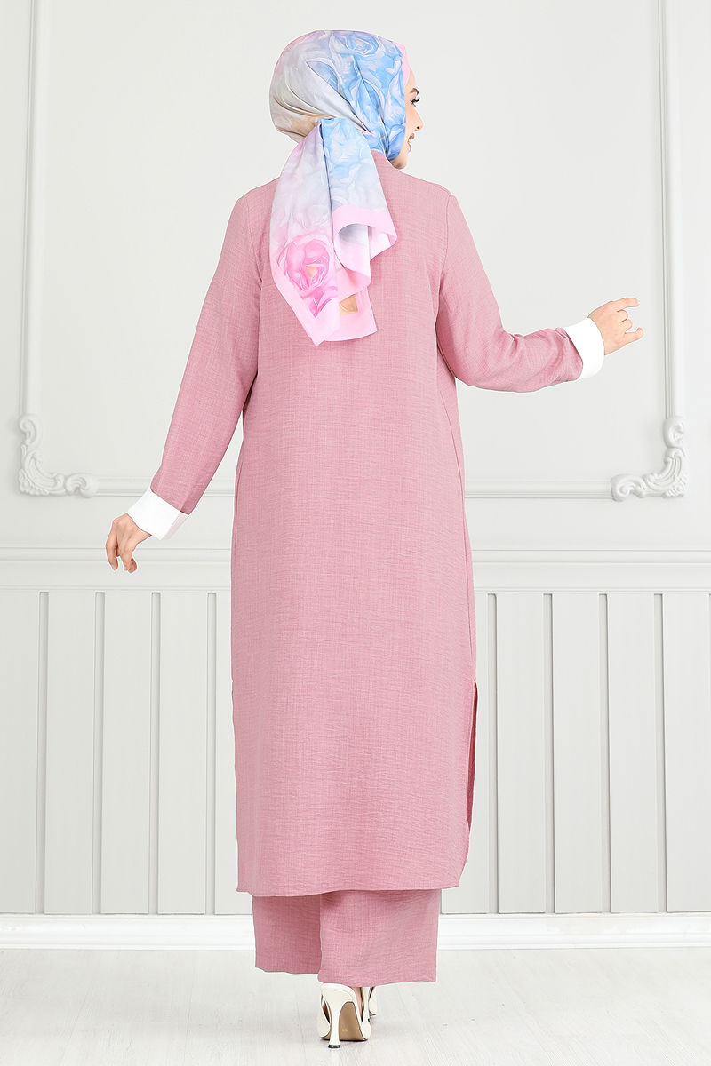 The Side Slit Triple Set offers a modern and chic design with comfort across all seasons. Made from Sofia Linen fabric, this special set is suitable for delicate wash and can be washed at 30 degrees. Featuring side slits and a crew neck design, it stands out with its unlined structure providing a light and comfortable fit. It includes a sleeveless inner blouse and elasticated waist pants. Ideal for both everyday wear and special occasions.