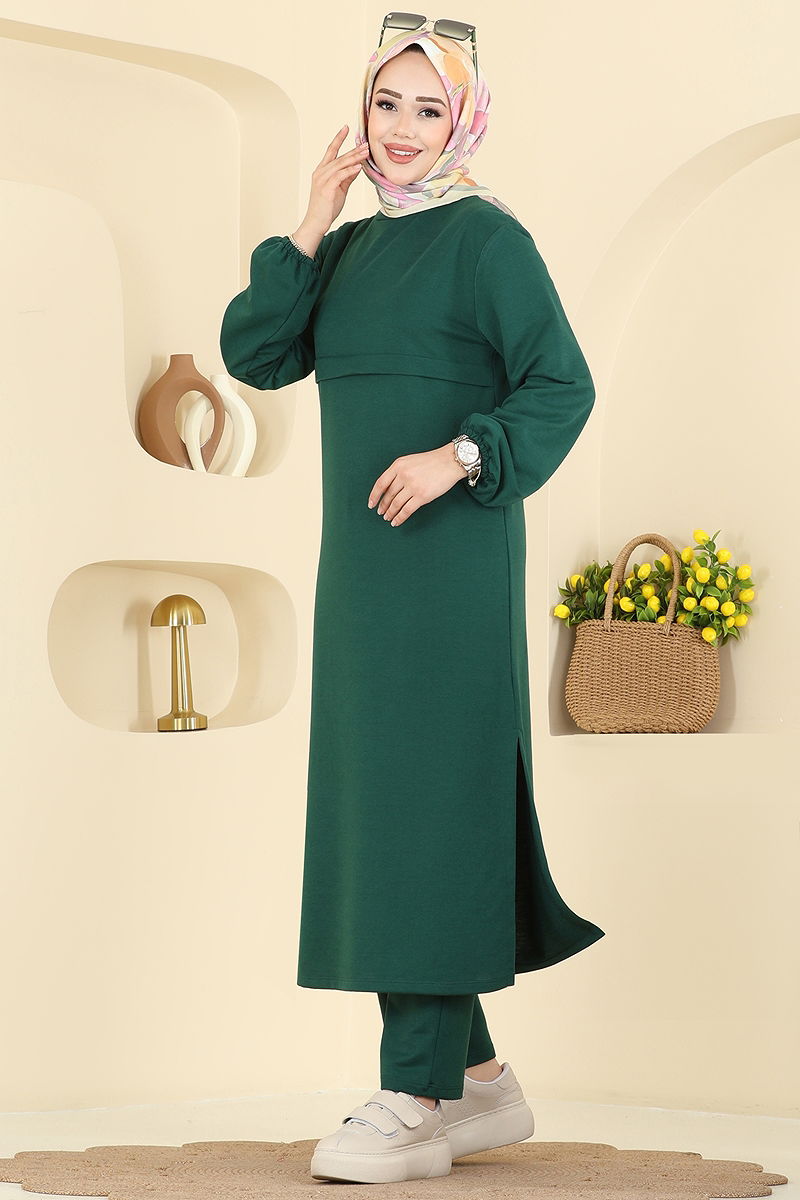 Product Feature : It is a new season hijab fashion product. The product has a Cycling collar. The tunic has a side slash.. Unlined. The waist of the trousers is elastic. The cuff is rubberized. There may be a tonal difference in the product due to concept photo shoots.