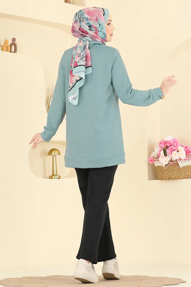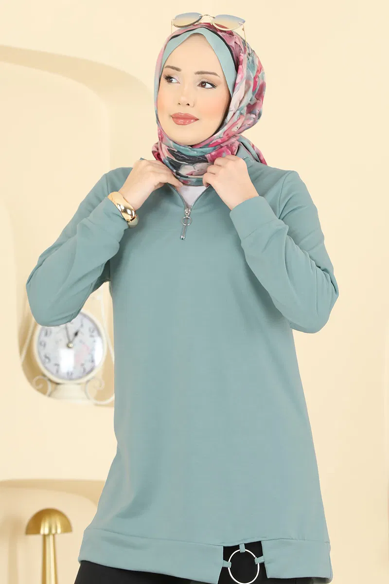 Product Feature : It is a new season hijab fashion product. There is a half zipper that can be used from the front. The product has a Judge collar. Unlined.. The product has a zipper at the From the front part. Metal anti-tarnish accessory. The waist of the trousers is elastic. There may be a tonal difference in the product due to concept photo shoots.