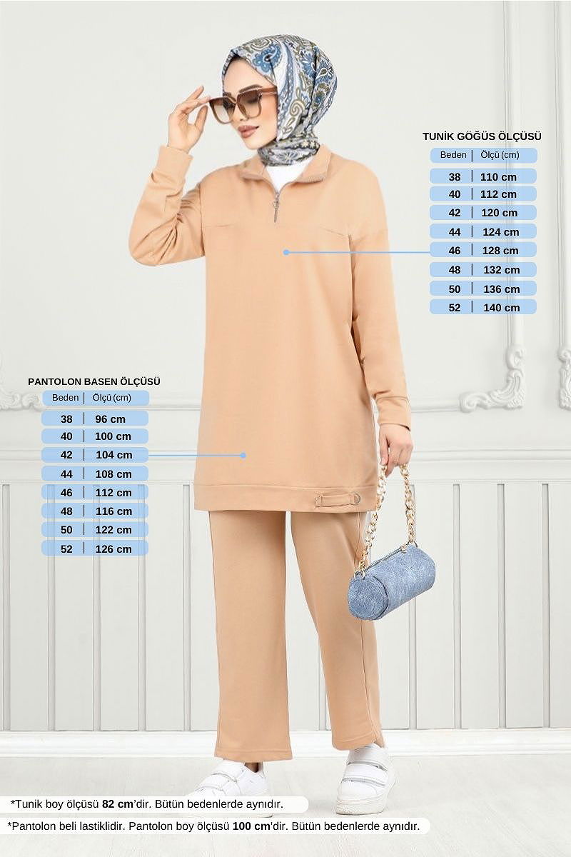 المنتج لديه ياقة نصف بيضوية. غير مبطنة. المنتج به سحاب في جزء من الأمام. خصر البنطال مرن. قد يكون هناك اختلاف في الدرجة اللونية في المنتج بسبب التقاط الصور الفوتوغرافية.