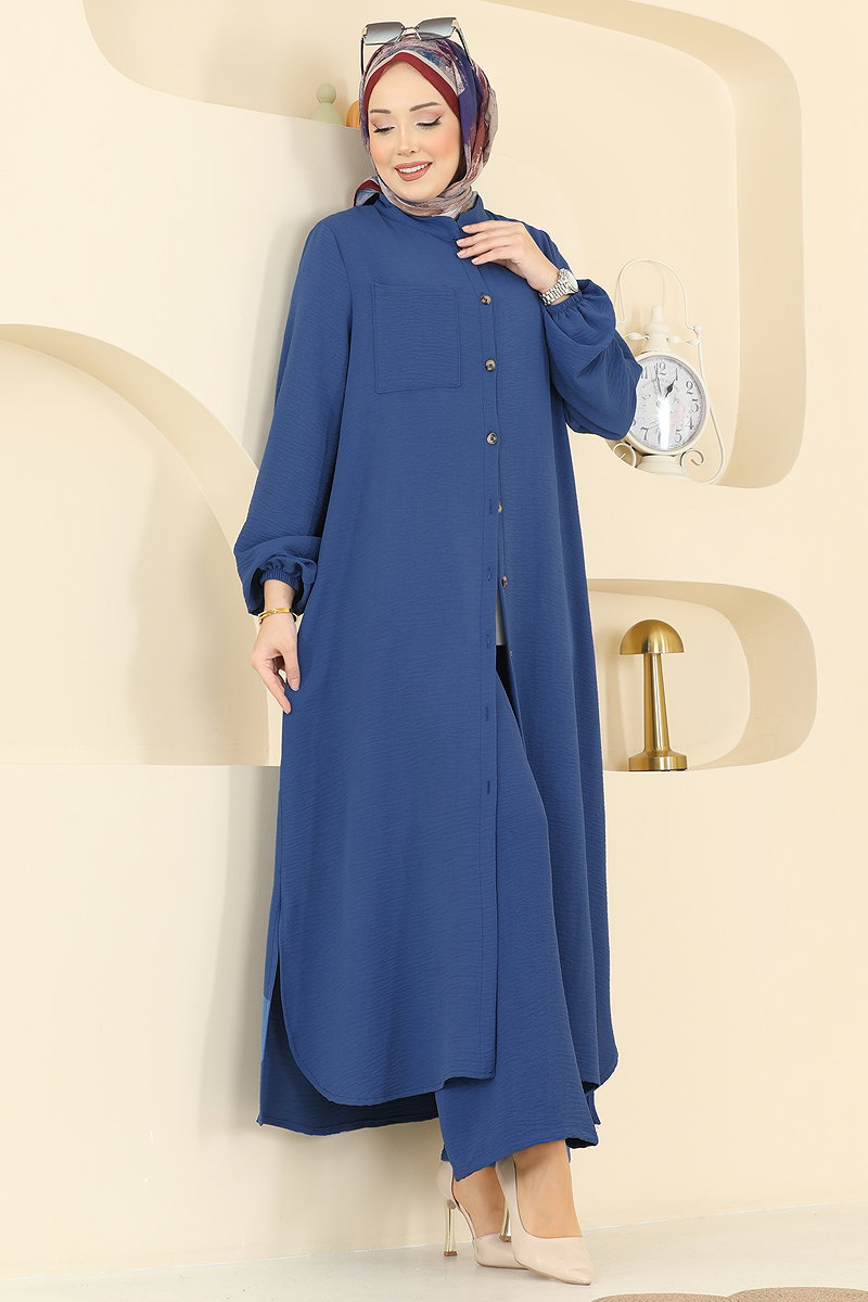 المنتج لديه ياقة نصف بيضوية. المنتج به أزرار من الأمام. البلوز تحتوي على فتحة. غير مبطنة. البلوزة غير متضمنة. صُنعت عينة من المجموعة مع البلوزة لإظهار الاستخدام المقصود للمنتج. الجيب الصدري نشط. خصر البنطال مرن. السوار مطاطي. قد يكون هناك اختلاف في الدرجة اللونية في المنتج بسبب التقاط الصور الفوتوغرافية.