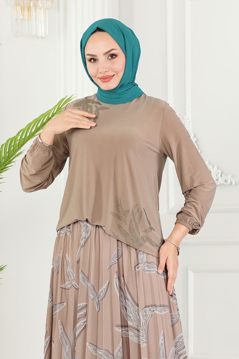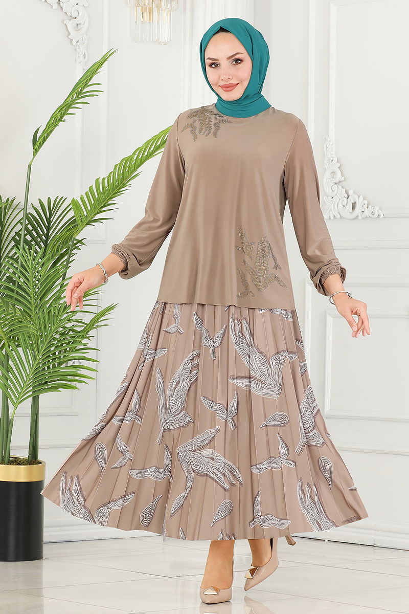Product Feature : It is a new season hijab fashion product. The inner garment is worn over the head. The product has a Cycling collar. Unlined. The stones are glued. The skirt has an elastic waist and laces. The cuff is rubberized. There may be a tonal difference in the product due to concept photo shoots.