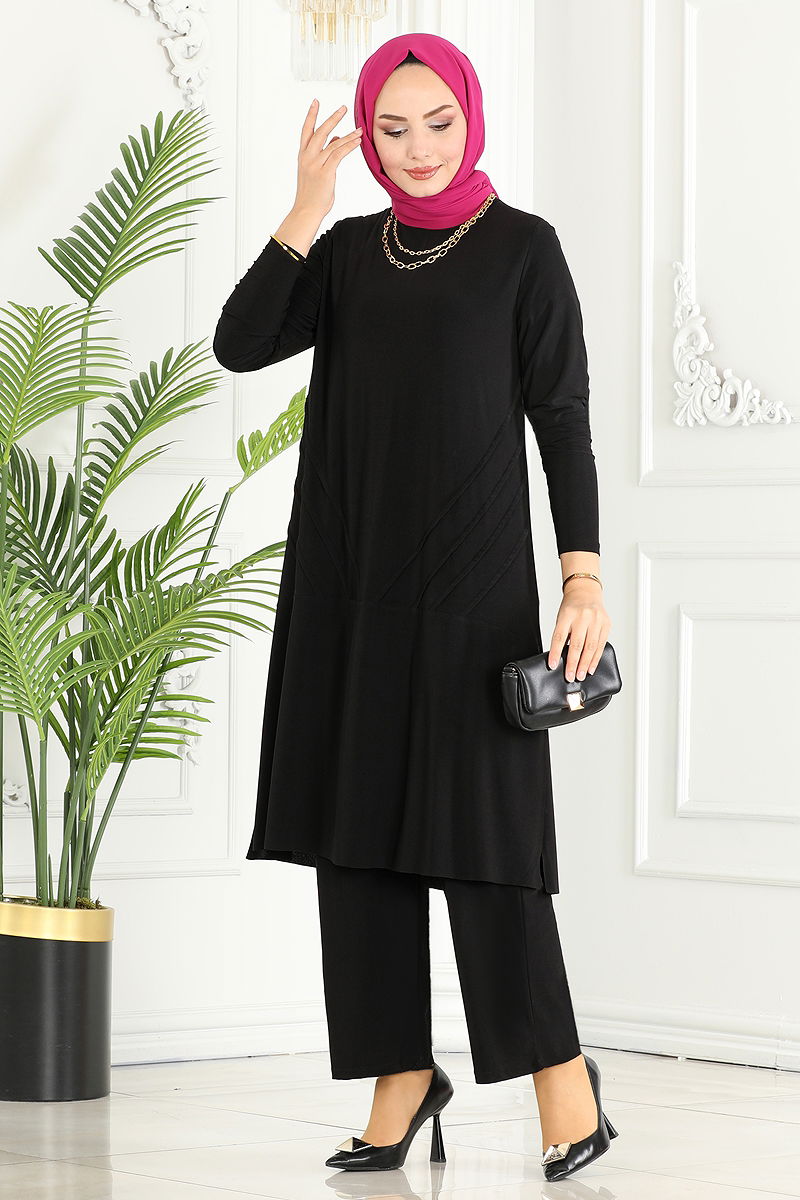 Product Feature : It is a new season hijab fashion product. The inner garment is worn over the head. The product has a Cycling collar. Unlined.. The waist of the trousers is elastic. There may be a tonal difference in the product due to concept photo shoots.