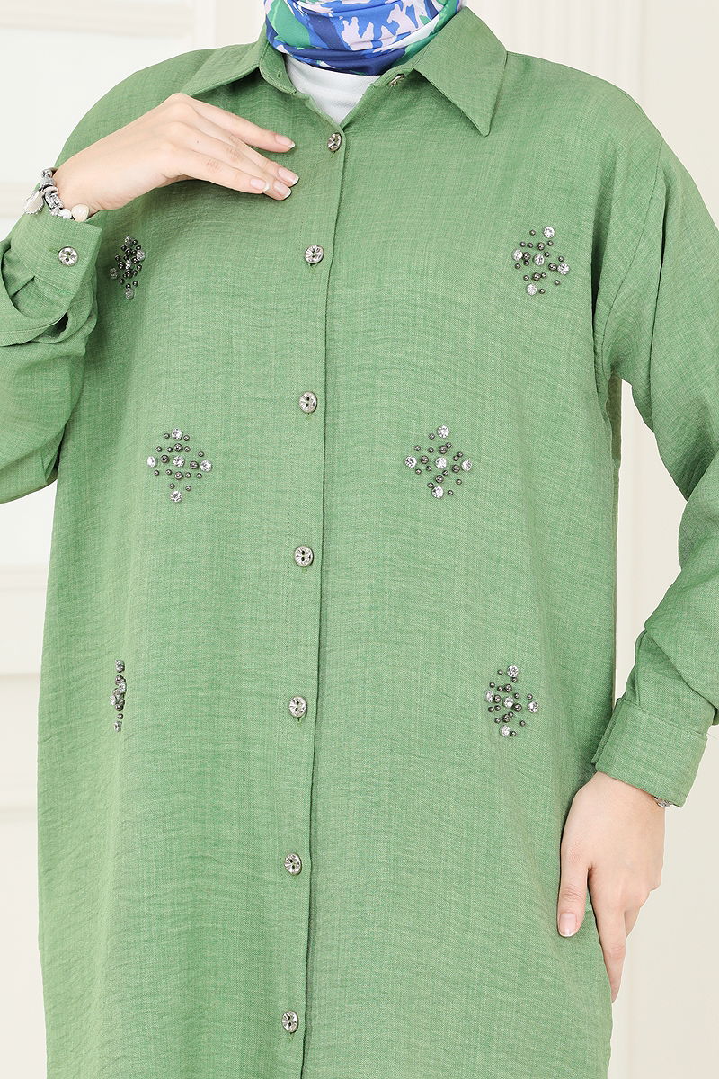 المنتج لديه ياقة القميص. المنتج به أزرار من الأمام. غير مبطنة. التفاصيل الحجرية محفورة. خصر البنطال مرن. أزرار الكفة نشطة. قد يكون هناك اختلاف في الدرجة اللونية في المنتج بسبب التقاط الصور الفوتوغرافية.