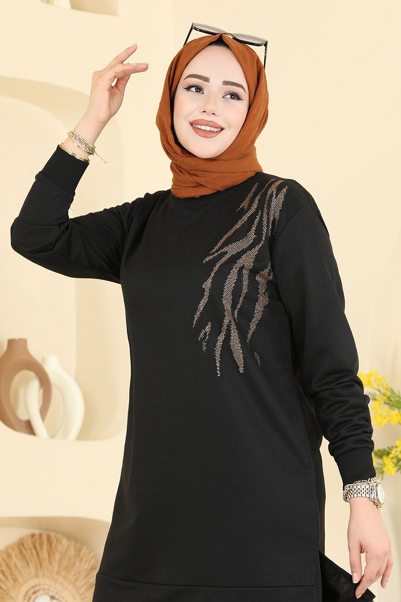 Embrace the new season with the Stone Detailed Double Thread Set COMBO, designed for comfort in all four seasons. This hijab set, which can be washed gently at 30 degrees, is made from durable double thread fabric. Featuring a modern crew neck, a tunic with side slits, and elastic waist pants, this product combines comfort with elegance. Offered in size M, it has stick-on stone details and is perfect for both everyday wear and special occasions.