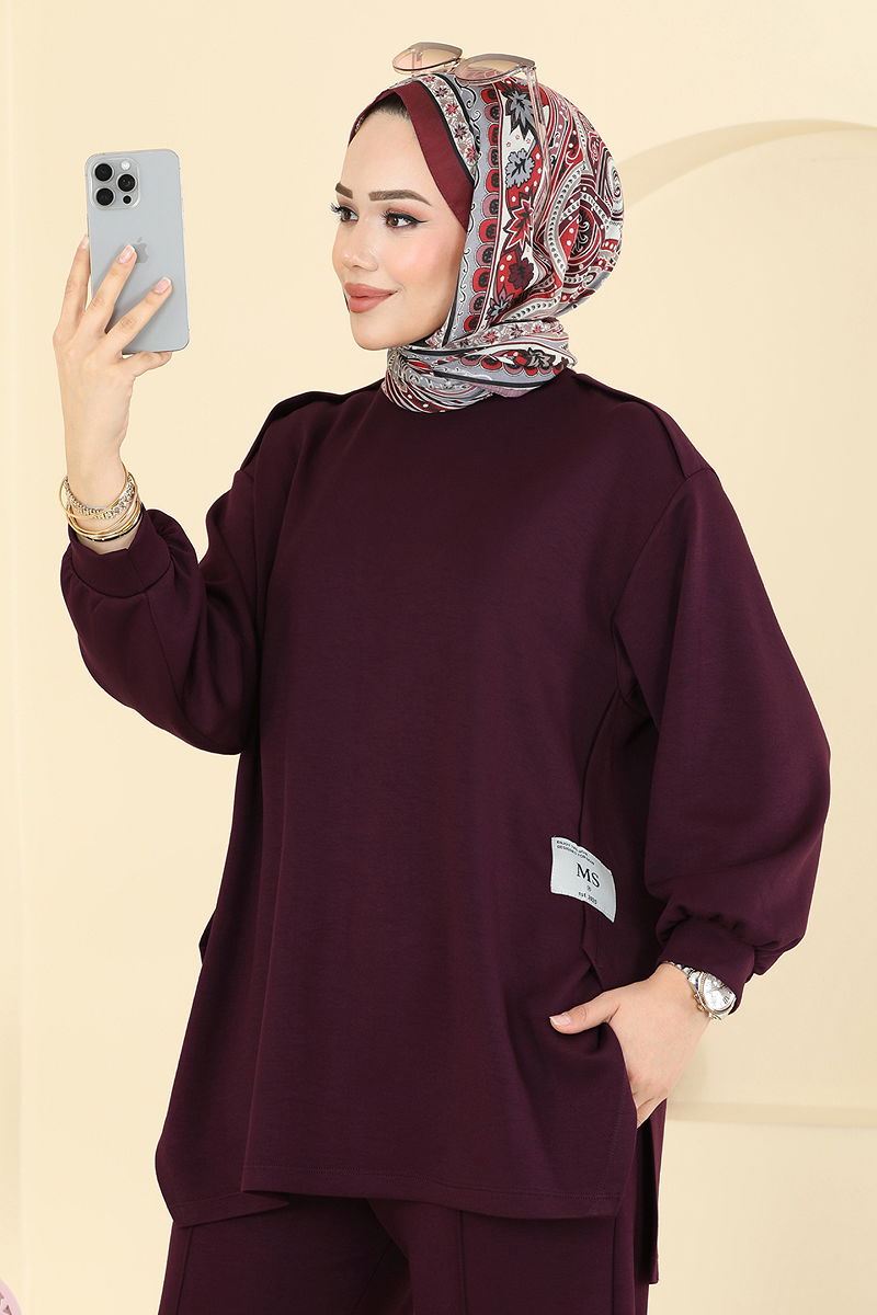 The Asymmetrical Cut Modal Suit adds a stylish and comfortable option to your modest fashion collection. Made from modal fabric, this suit offers comfort suitable for all seasons. With the capability of gentle wash at 30 degrees, it is ideal for prolonged use. It features a bike collar and a slit for a modern touch, while its unlined structure provides a light and breathable experience. The drawstring waist top and elastic waist pants provide both comfort and elegance. As a tunic and pants set, this suit delivers ideal comfort and style throughout the four seasons.